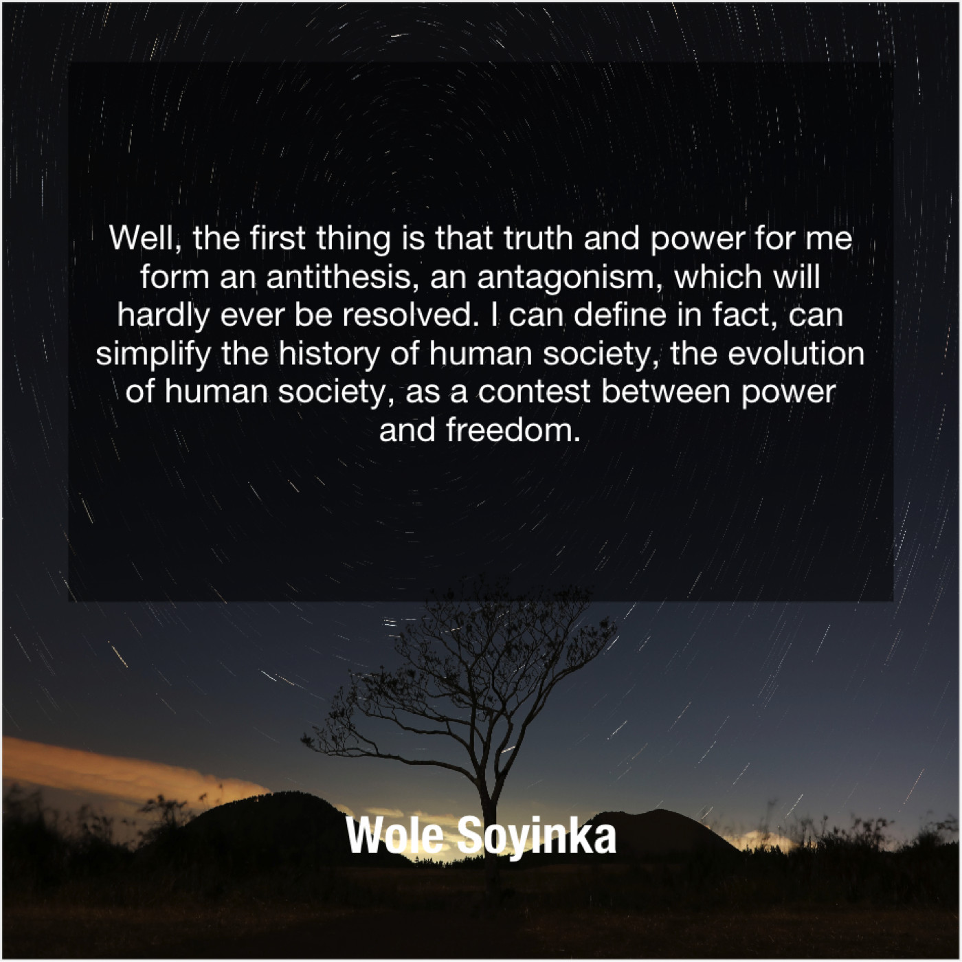 “Well, the first thing is that truth and power for me form an antithesis, an antagonism, which will hardly ever be resolved. I can define in fact, can simplify the history of human society, the evolution of human society, as a contest between power and freedom.”
