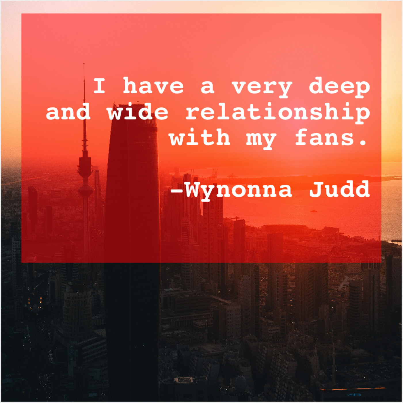 Wynonna Judd Wynonna Judd – I have a very deep… July 21, 2019 admin “I have a very deep and wide relationship with my fans.”-Wynonna Judd