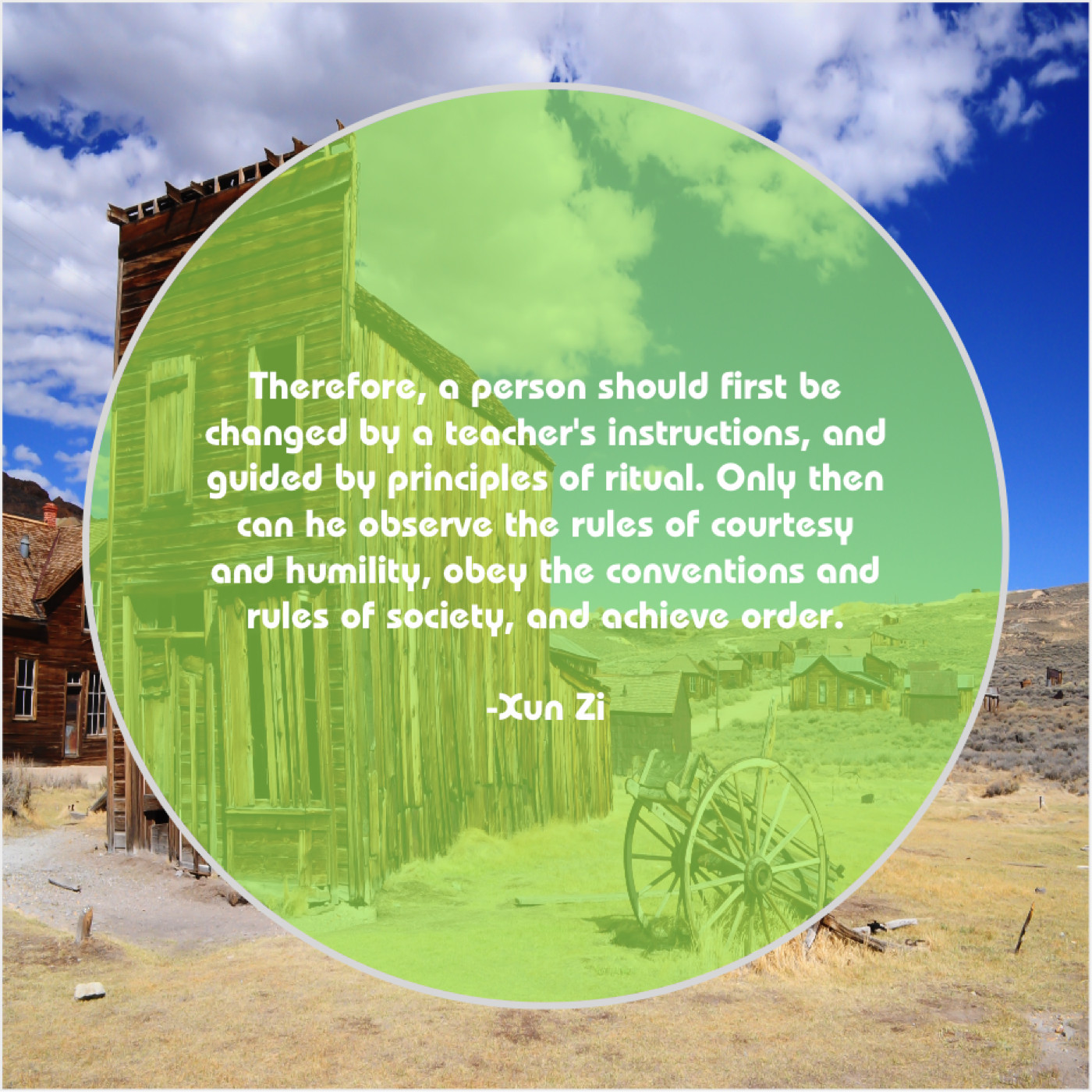 Xun Zi Xun Zi – Therefore, a person should first… August 2, 2019 admin “Therefore, a person should first be changed by a teacher’s instructions, and guided by principles of ritual. Only then can he observe the rules of courtesy and humility, obey the conventions and rules of society, and achieve order.”-Xun Zi