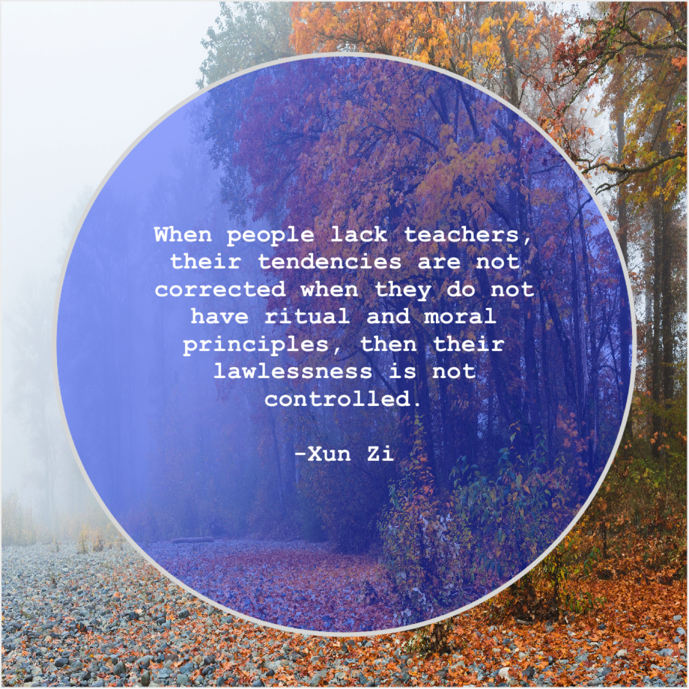 Xun Zi Xun Zi – When people lack teachers, their… August 25, 2019 admin “When people lack teachers, their tendencies are not corrected when they do not have ritual and moral principles, then their lawlessness is not controlled.”-Xun Zi