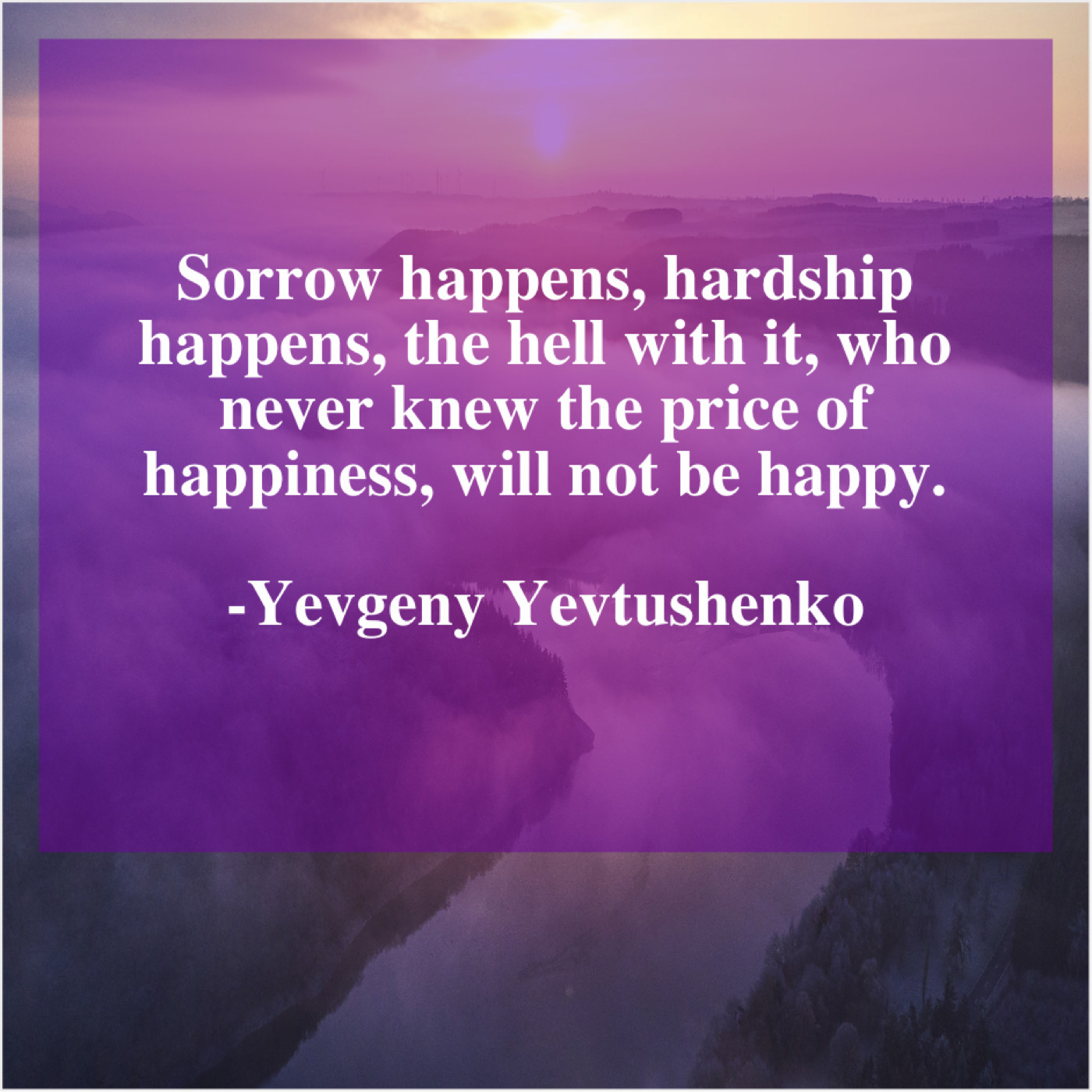 Yevgeny Yevtushenko Yevgeny Yevtushenko – Sorrow happens, hardship happens, the… April 27, 2019 admin “Sorrow happens, hardship happens, the hell with it, who never knew the price of happiness, will not be happy.”-Yevgeny Yevtushenko