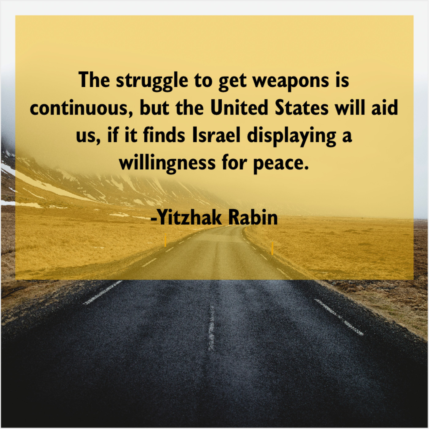 Yitzhak Rabin Yitzhak Rabin – The struggle to get weapons… July 7, 2019 admin “The struggle to get weapons is continuous, but the United States will aid us, if it finds Israel displaying a willingness for peace.”-Yitzhak Rabin