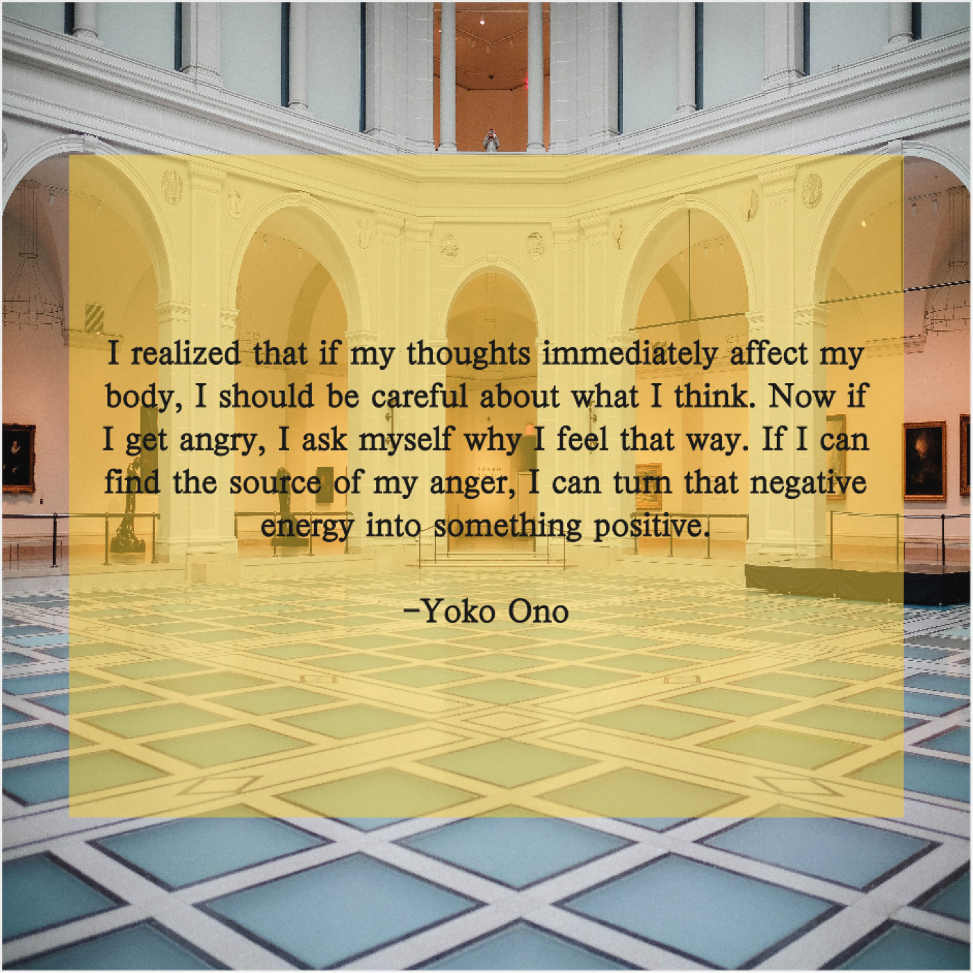“I realized that if my thoughts immediately affect my body, I should be careful about what I think. Now if I get angry, I ask myself why I feel that way. If I can find the source of my anger, I can turn that negative energy into something positive.”