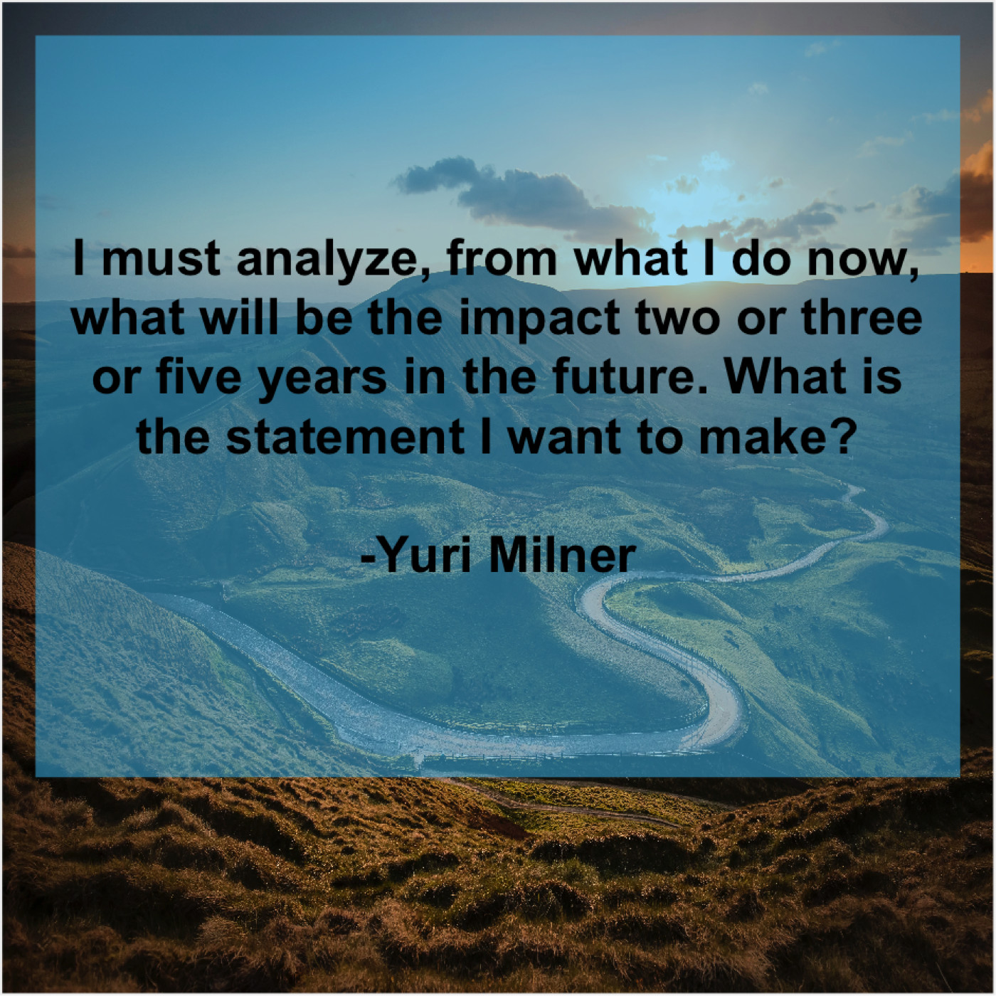 Yuri Milner Yuri Milner – I must analyze, from what… September 2, 2019 admin “I must analyze, from what I do now, what will be the impact two or three or five years in the future. What is the statement I want to make?”-Yuri Milner