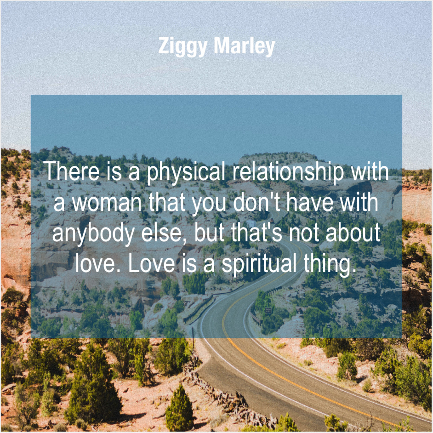 Ziggy Marley Ziggy Marley – There is a physical relationship… December 23, 2018 admin “There is a physical relationship with a woman that you don’t have with anybody else, but that’s not about love. Love is a spiritual thing.”-Ziggy Marley