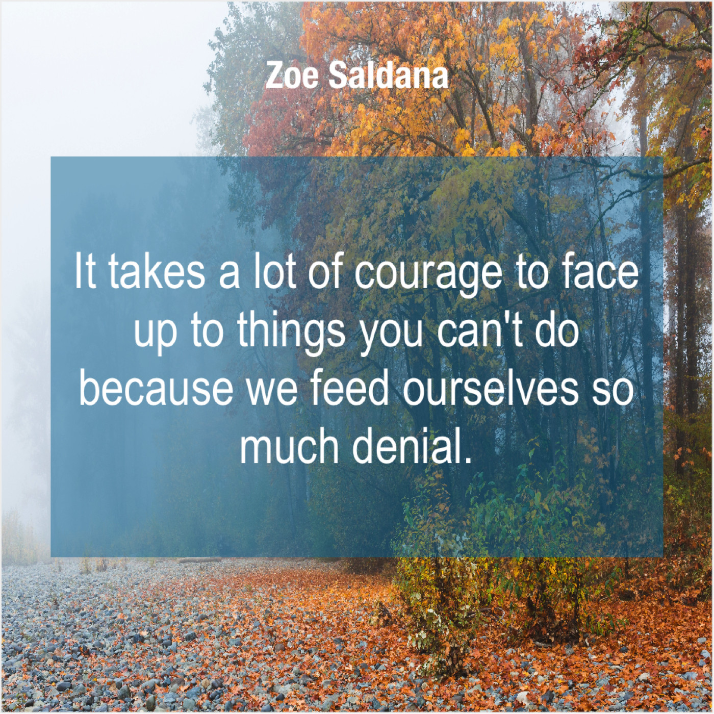 Zoe Saldana Zoe Saldana – It takes a lot of… February 8, 2019 admin “It takes a lot of courage to face up to things you can’t do because we feed ourselves so much denial.”-Zoe Saldana