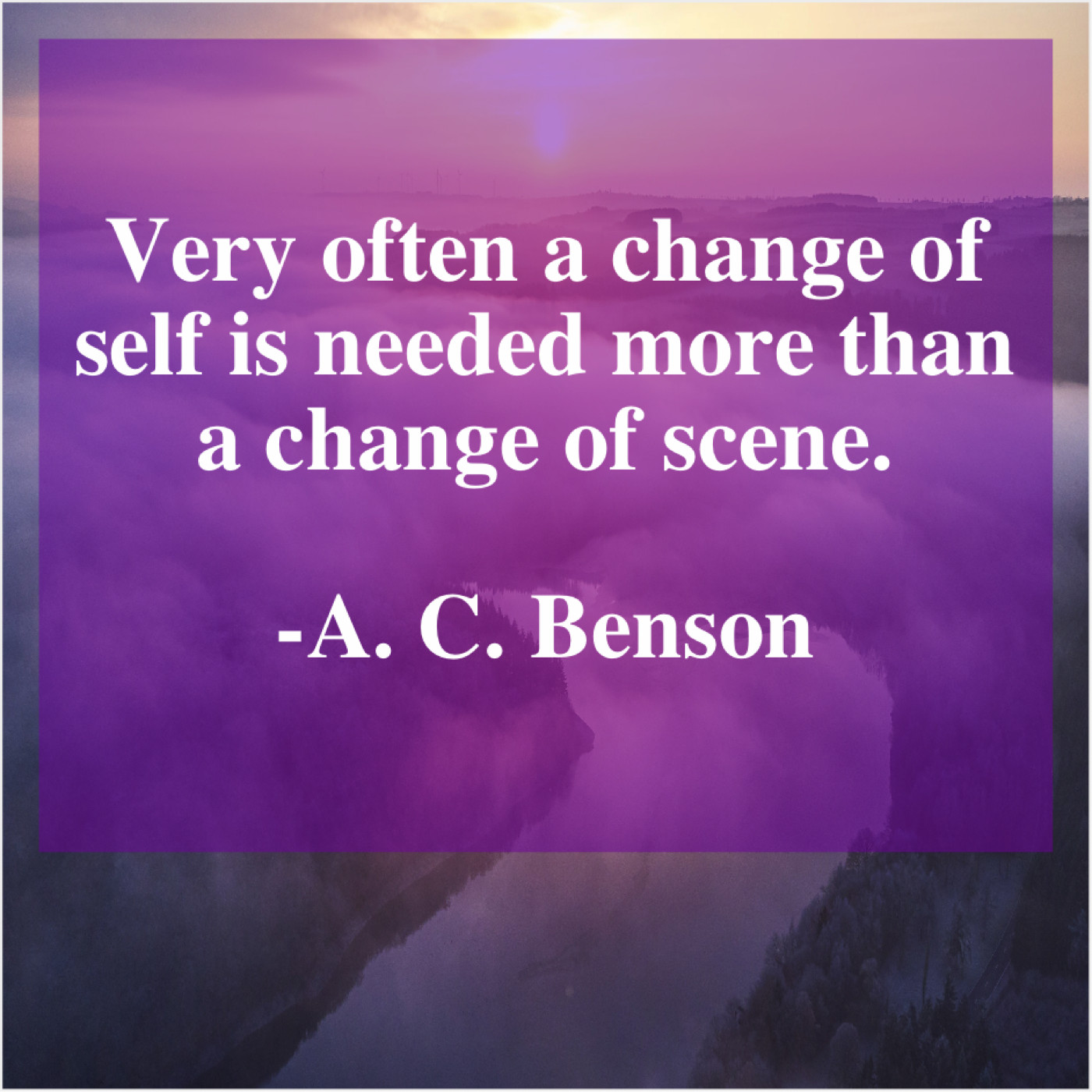 A. C. Benson A. C. Benson – Very often a change of… July 11, 2019 admin “Very often a change of self is needed more than a change of scene.”-A. C. Benson
