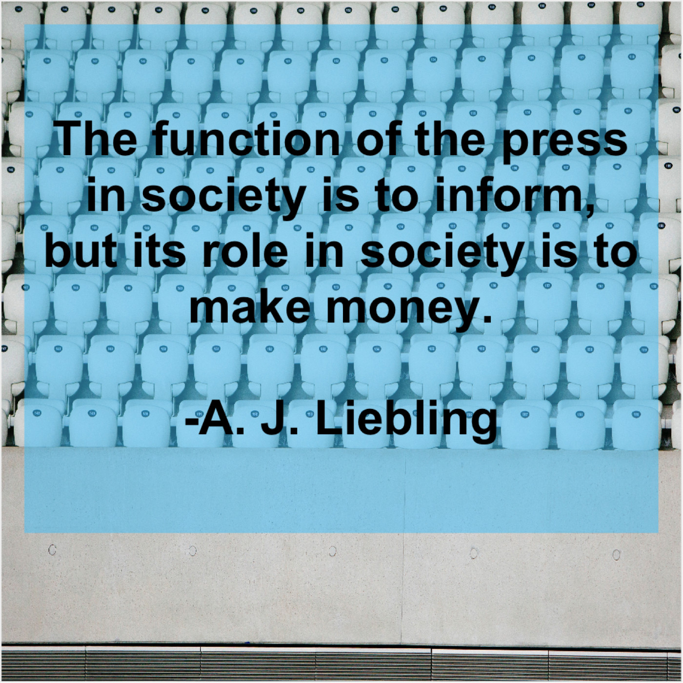 A. J. Liebling A. J. Liebling – The function of the press… August 13, 2019 admin “The function of the press in society is to inform, but its role in society is to make money.”-A. J. Liebling