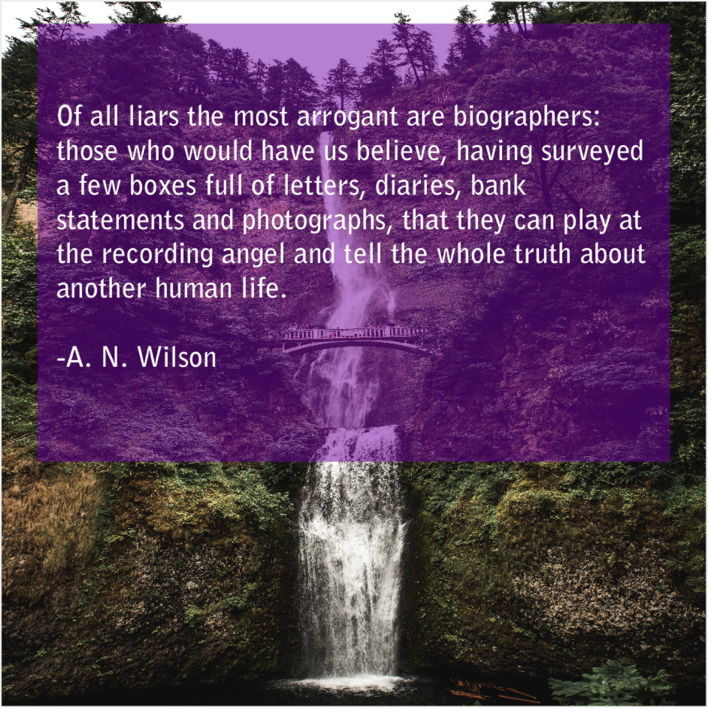 “Of all liars the most arrogant are biographers: those who would have us believe, having surveyed a few boxes full of letters, diaries, bank statements and photographs, that they can play at the recording angel and tell the whole truth about another human life.”
