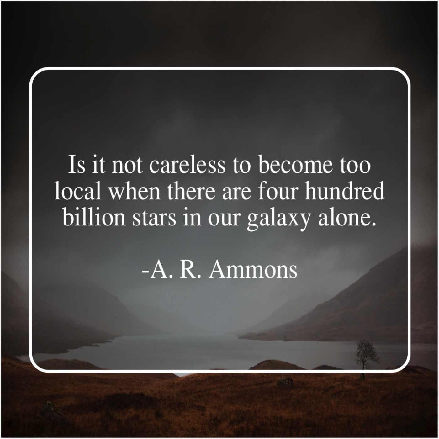“Is it not careless to become too local when there are four hundred billion stars in our galaxy alone.”