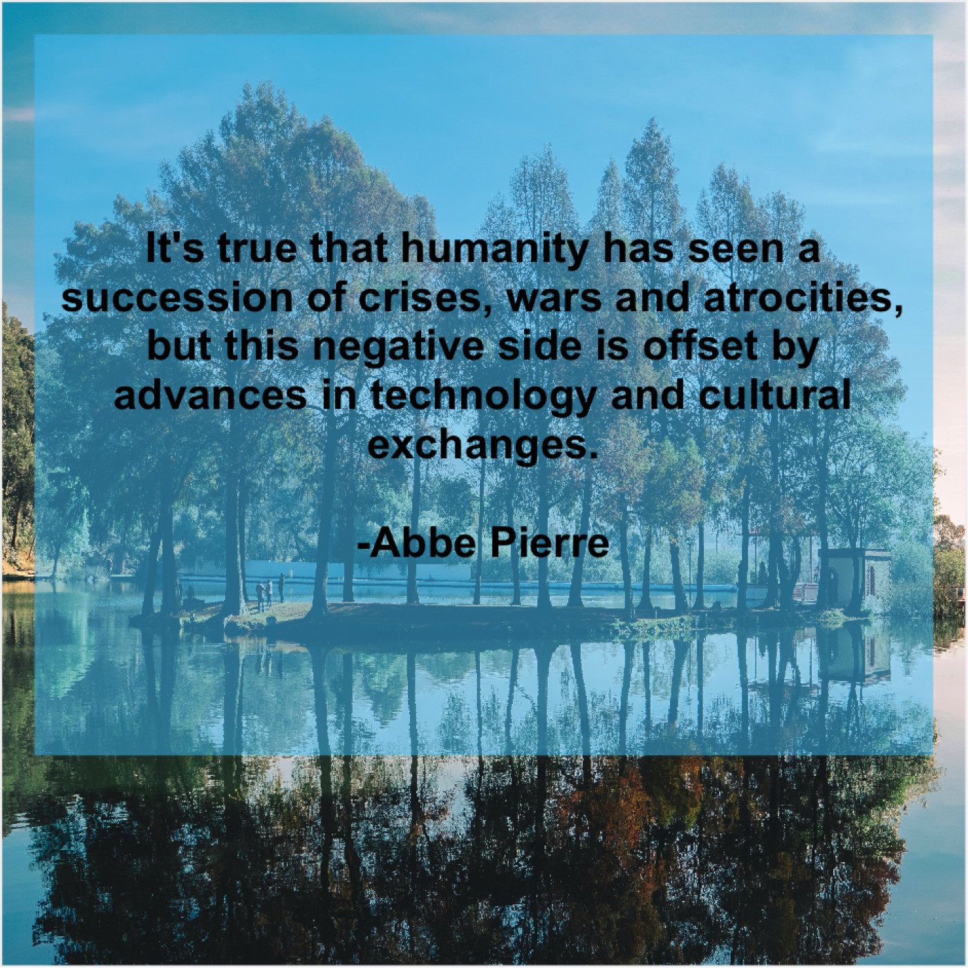 Abbe Pierre Abbe Pierre – It’s true that humanity has… September 6, 2019 admin “It’s true that humanity has seen a succession of crises, wars and atrocities, but this negative side is offset by advances in technology and cultural exchanges.”-Abbe Pierre