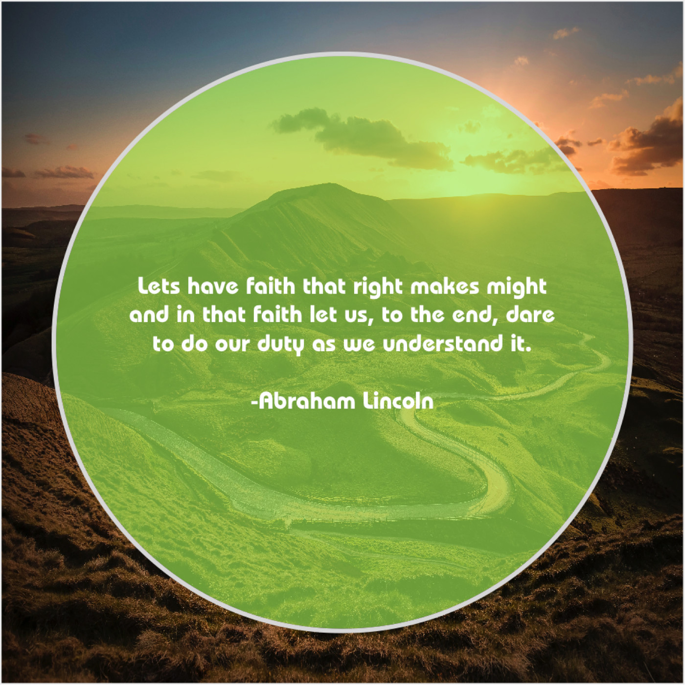 “Lets have faith that right makes might and in that faith let us, to the end, dare to do our duty as we understand it.”