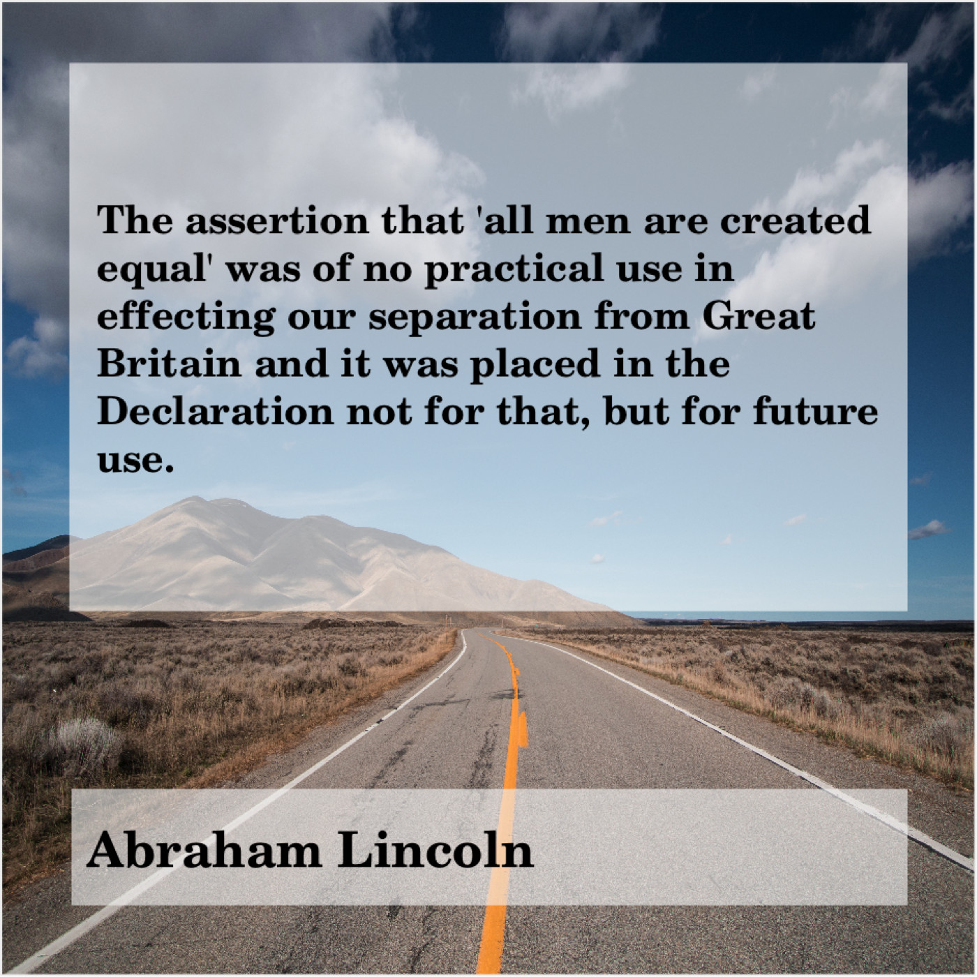 Abraham Lincoln Abraham Lincoln – The assertion that ‘all men… February 18, 2019 admin “The assertion that ‘all men are created equal’ was of no practical use in effecting our separation from Great Britain and it was placed in the Declaration not for that, but for future use.”-Abraham Lincoln