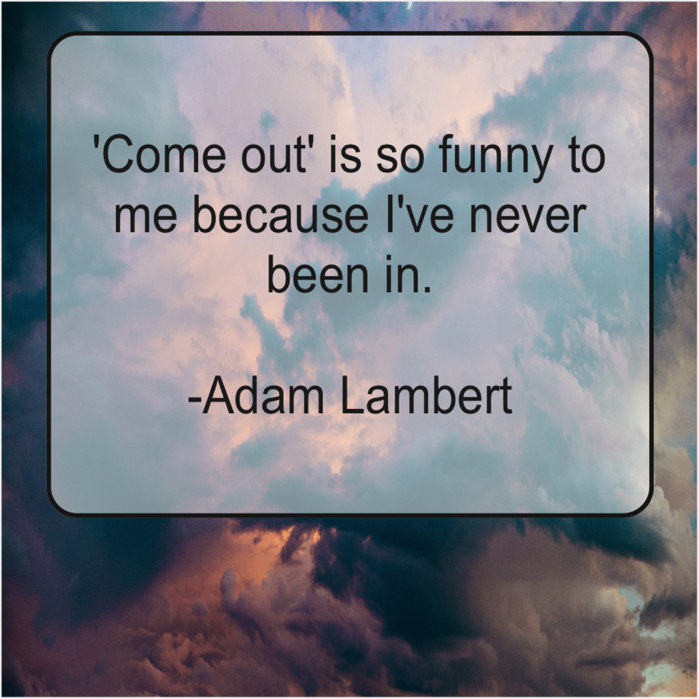 Adam Lambert Adam Lambert – Come out’ is so funny… December 14, 2018 admin “‘Come out’ is so funny to me because I’ve never been in.”-Adam Lambert