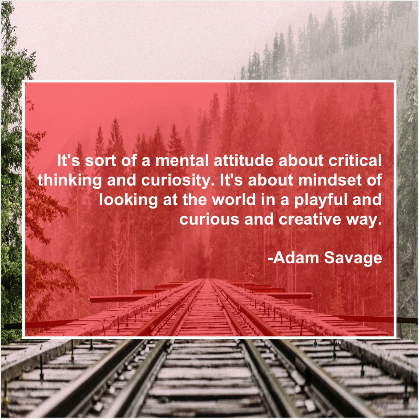 Adam Savage Adam Savage – It’s sort of a mental… October 2, 2019 admin “It’s sort of a mental attitude about critical thinking and curiosity. It’s about mindset of looking at the world in a playful and curious and creative way.”-Adam Savage