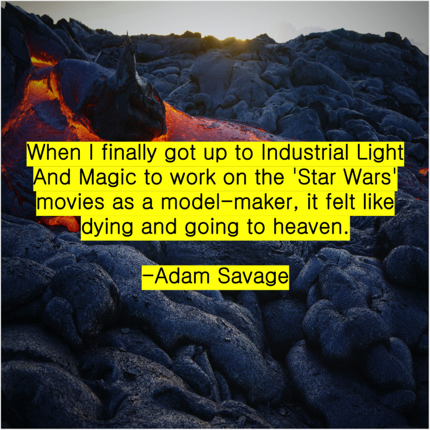 Adam Savage Adam Savage – When I finally got up… December 25, 2018 admin “When I finally got up to Industrial Light And Magic to work on the ‘Star Wars’ movies as a model-maker, it felt like dying and going to heaven.”-Adam Savage