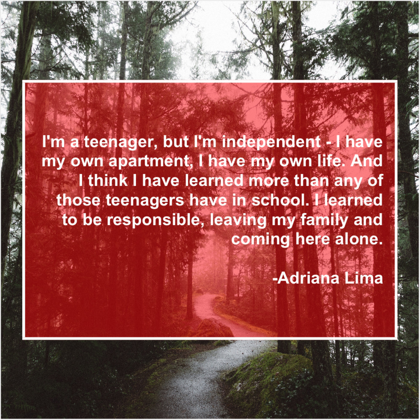 Adriana Lima Adriana Lima – I’m a teenager, but I’m… January 6, 2019 admin “I’m a teenager, but I’m independent – I have my own apartment, I have my own life. And I think I have learned more than any of those teenagers have in school. I learned to be responsible, leaving my family and coming here alone.”-Adriana Lima