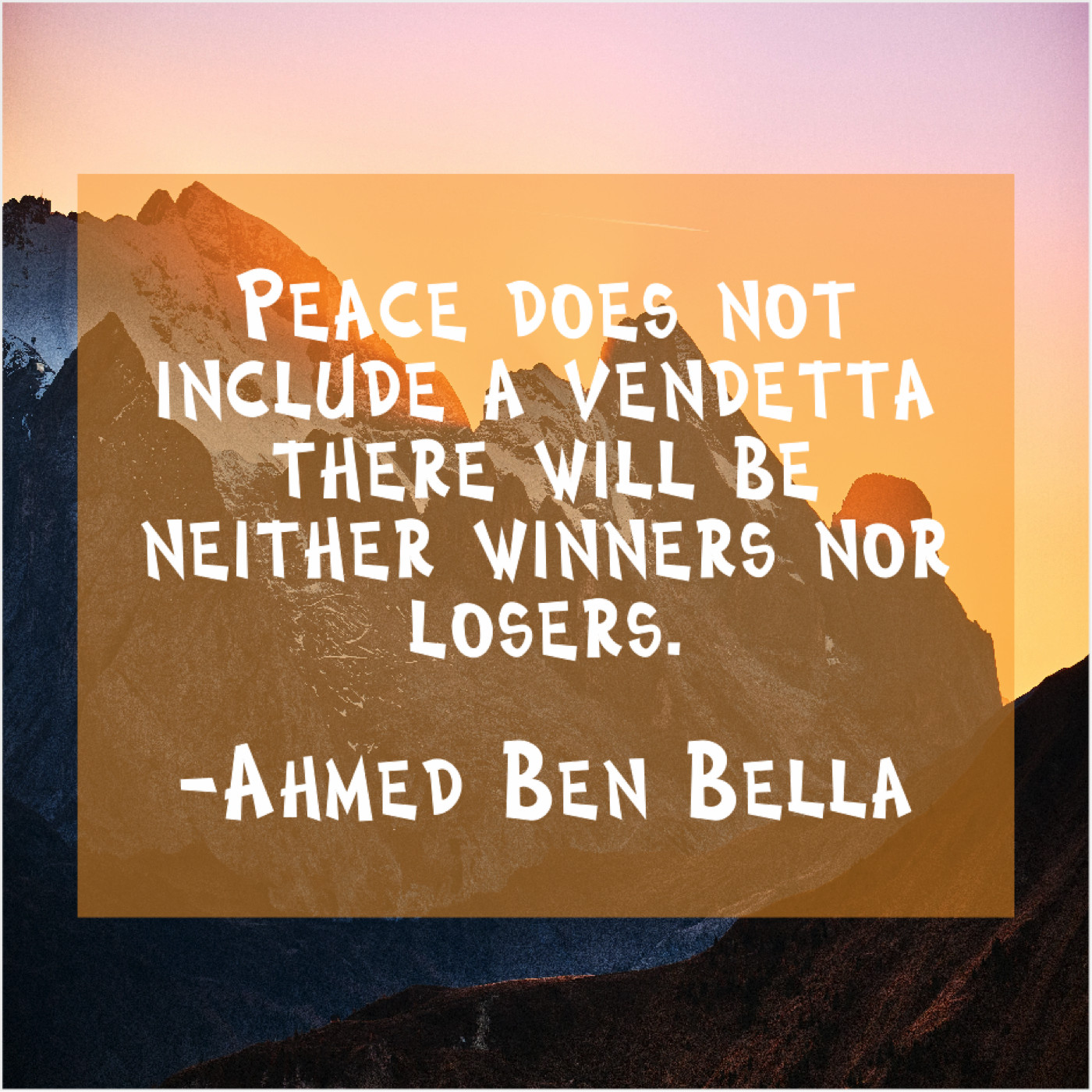 Ahmed Ben Bella Ahmed Ben Bella – Peace does not include a… September 25, 2019 admin “Peace does not include a vendetta there will be neither winners nor losers.”-Ahmed Ben Bella