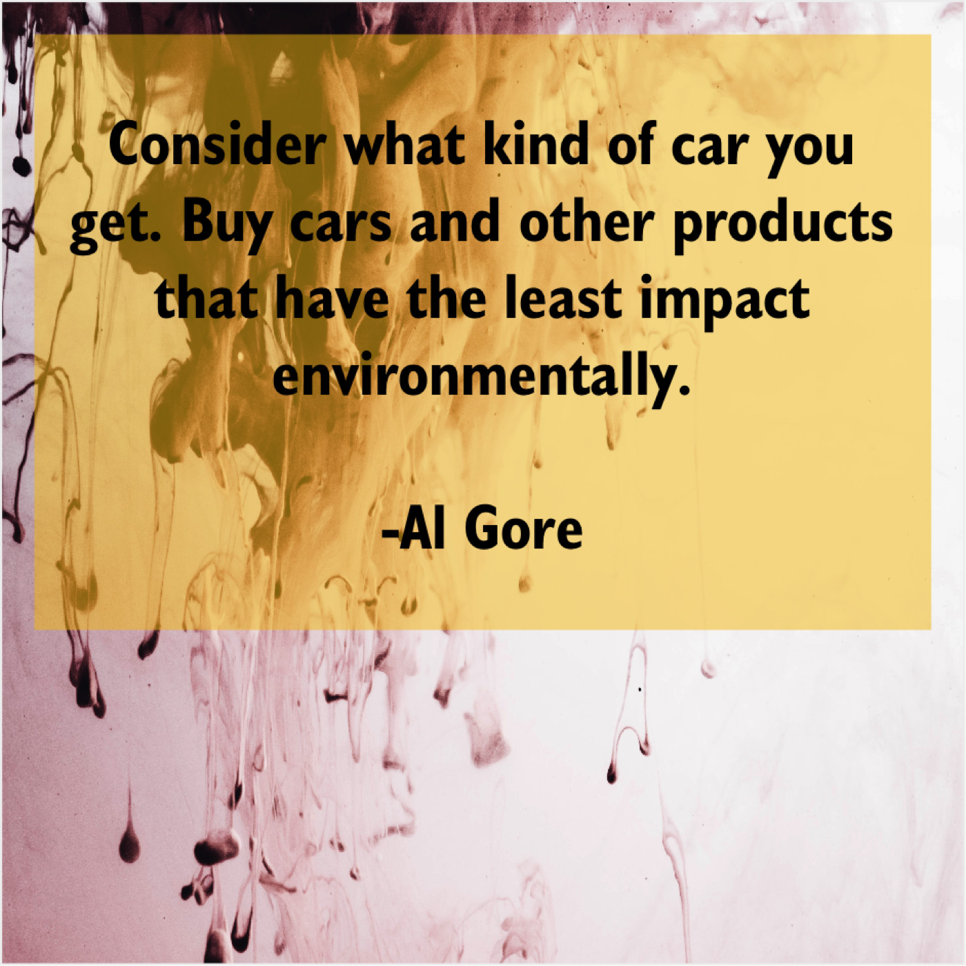 Al Gore Al Gore – Consider what kind of car… May 18, 2019 admin “Consider what kind of car you get. Buy cars and other products that have the least impact environmentally.”-Al Gore
