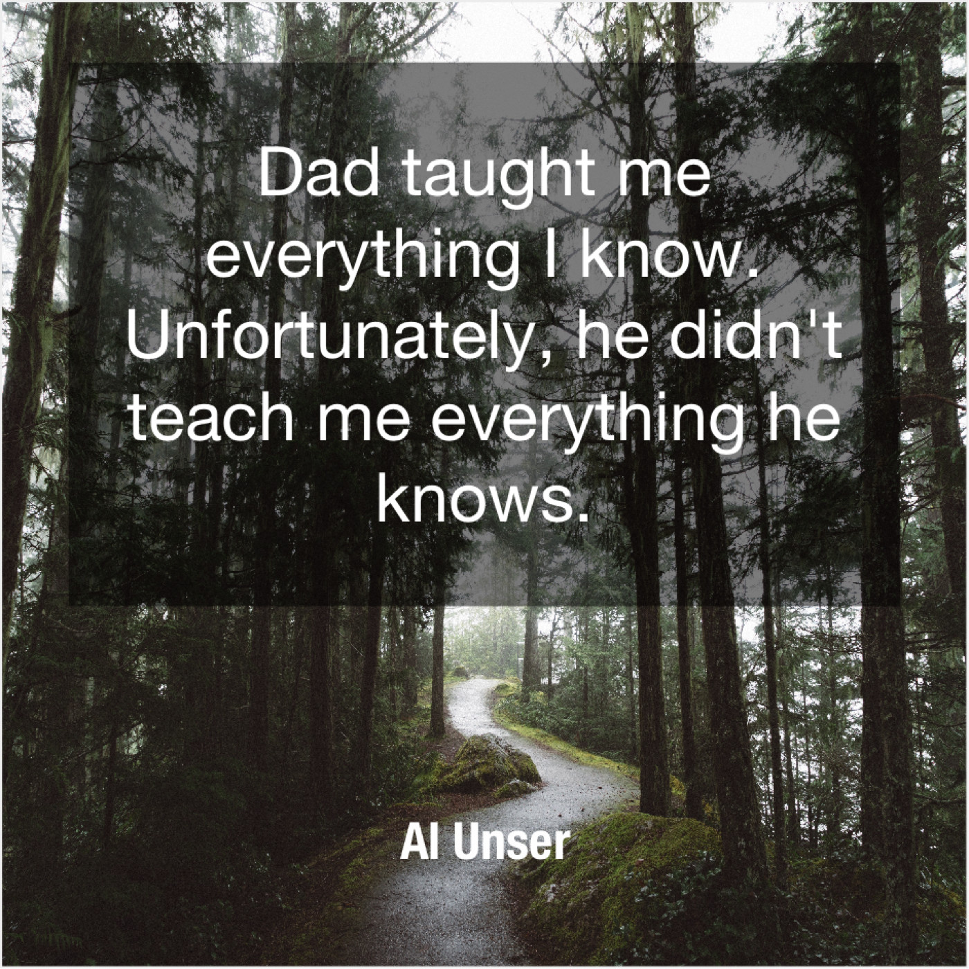 Al Unser Al Unser – Dad taught me everything I… April 12, 2019 admin “Dad taught me everything I know. Unfortunately, he didn’t teach me everything he knows.”-Al Unser