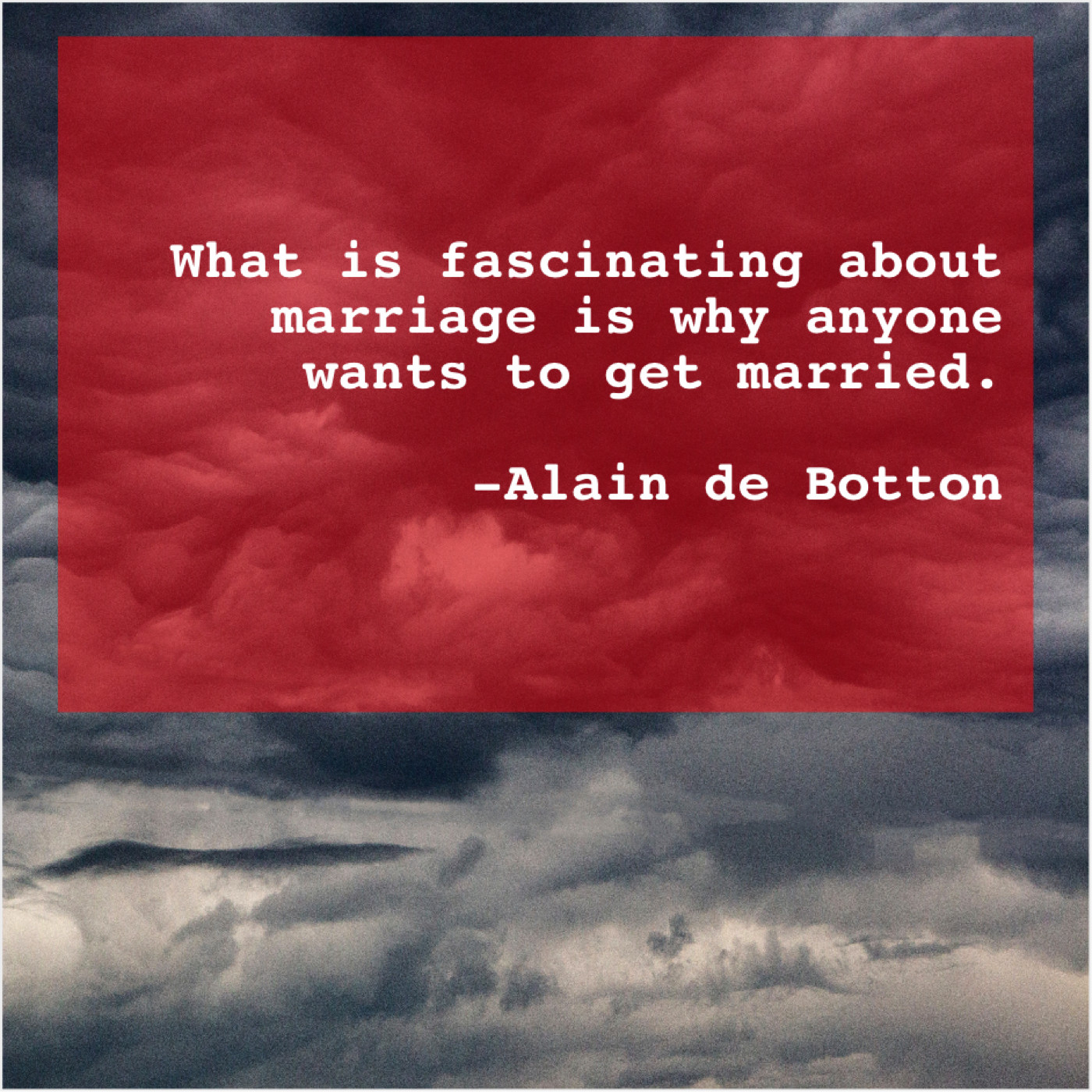 Alain de Botton Alain de Botton – What is fascinating about marriage… September 4, 2019 admin “What is fascinating about marriage is why anyone wants to get married.”-Alain de Botton