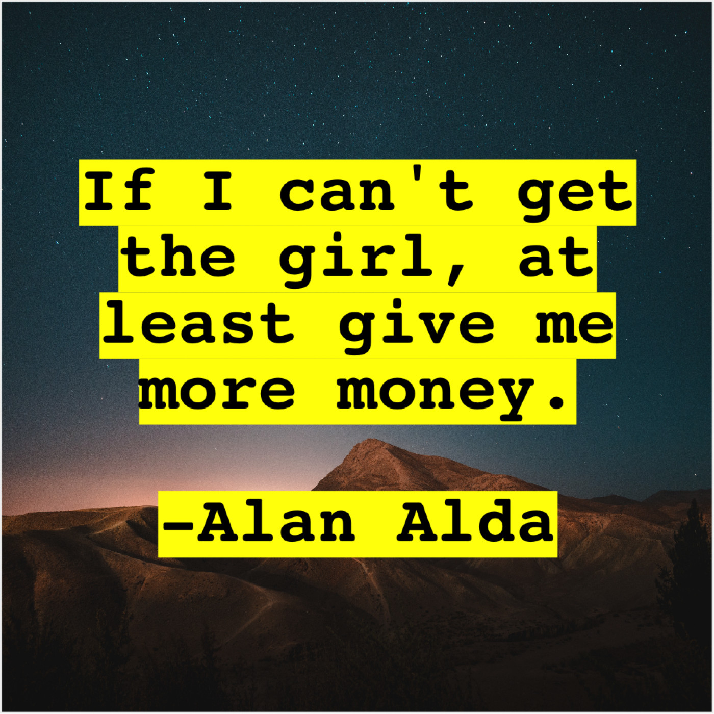 Alan Alda Alan Alda – If I can’t get the… November 10, 2018 admin “If I can’t get the girl, at least give me more money.”-Alan Alda