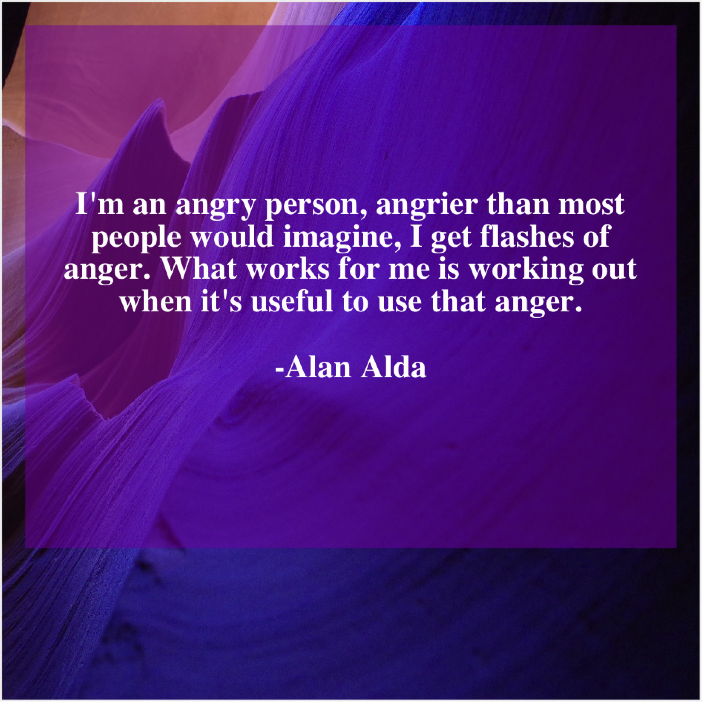 Alan Alda Alan Alda – I’m an angry person, angrier… May 21, 2019 admin “I’m an angry person, angrier than most people would imagine, I get flashes of anger. What works for me is working out when it’s useful to use that anger.”-Alan Alda