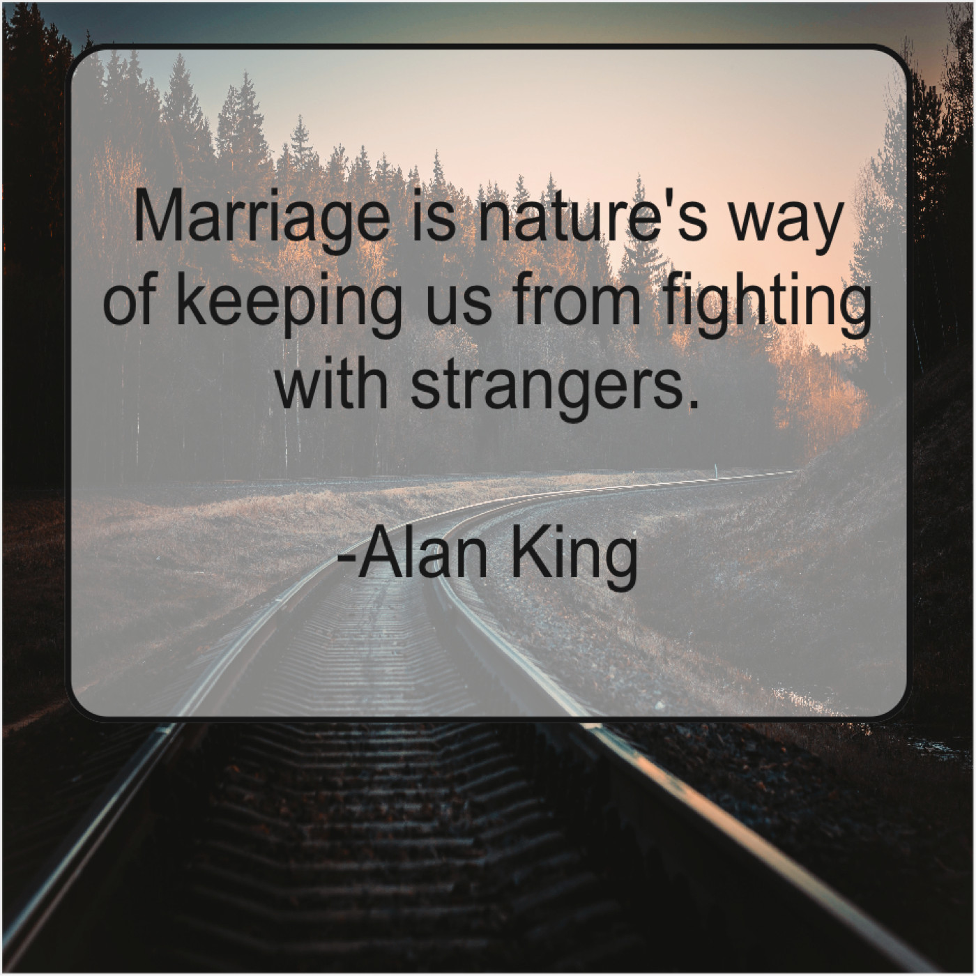 Alan King Alan King – Marriage is nature’s way of… December 28, 2018 admin “Marriage is nature’s way of keeping us from fighting with strangers.”-Alan King