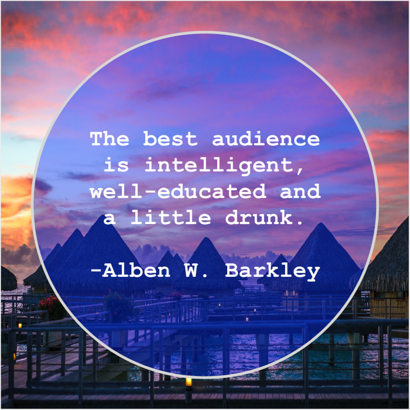 Alben W. Barkley Alben W. Barkley – The best audience is intelligent… September 5, 2019 admin “The best audience is intelligent, well-educated and a little drunk.”-Alben W. Barkley
