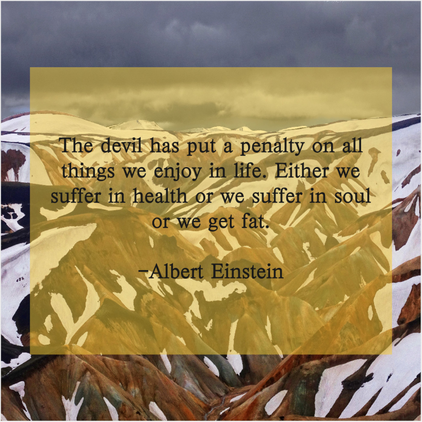 Albert Einstein Albert Einstein – The devil has put a… November 17, 2018 admin “The devil has put a penalty on all things we enjoy in life. Either we suffer in health or we suffer in soul or we get fat.”-Albert Einstein