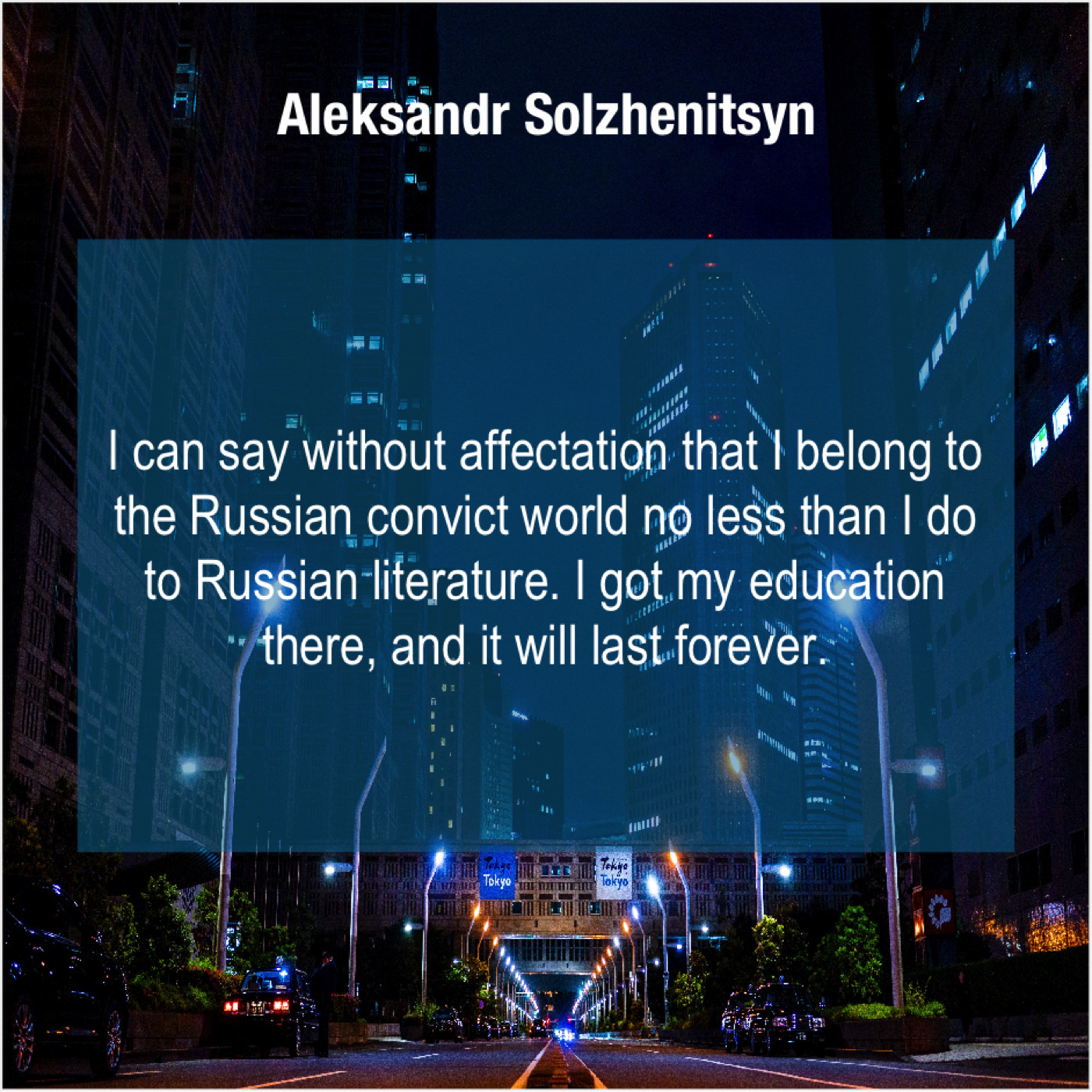 Aleksandr Solzhenitsyn Aleksandr Solzhenitsyn – I can say without affectation… April 8, 2019 admin “I can say without affectation that I belong to the Russian convict world no less than I do to Russian literature. I got my education there, and it will last forever.”-Aleksandr Solzhenitsyn
