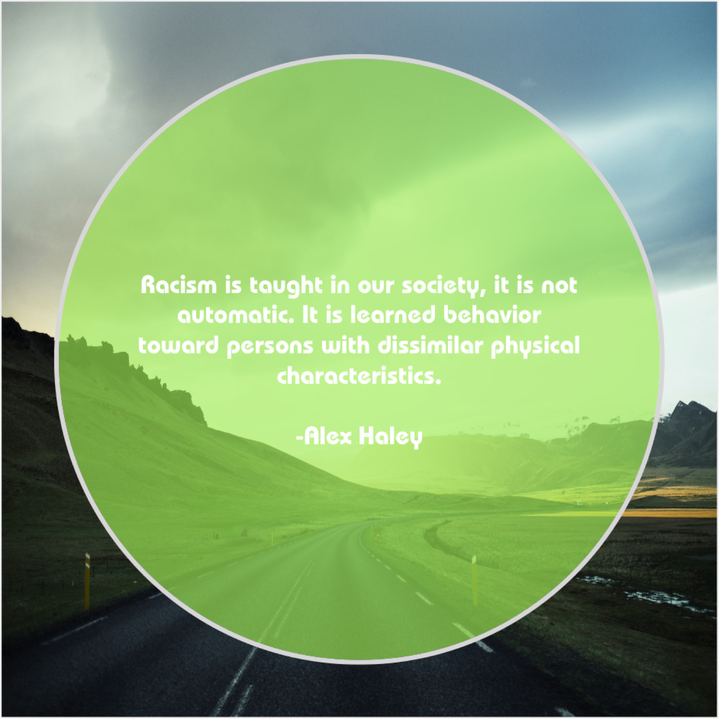 Alex Haley Alex Haley – Racism is taught in our… December 13, 2018 admin “Racism is taught in our society, it is not automatic. It is learned behavior toward persons with dissimilar physical characteristics.”-Alex Haley