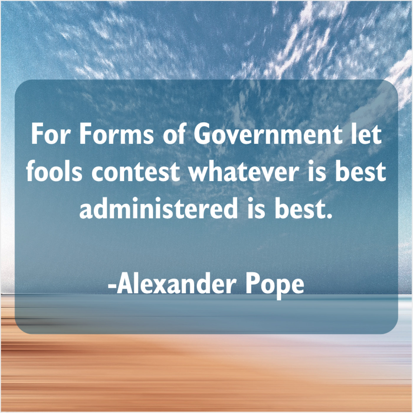 Alexander Pope Alexander Pope – For Forms of Government let… September 8, 2019 admin “For Forms of Government let fools contest whatever is best administered is best.”-Alexander Pope