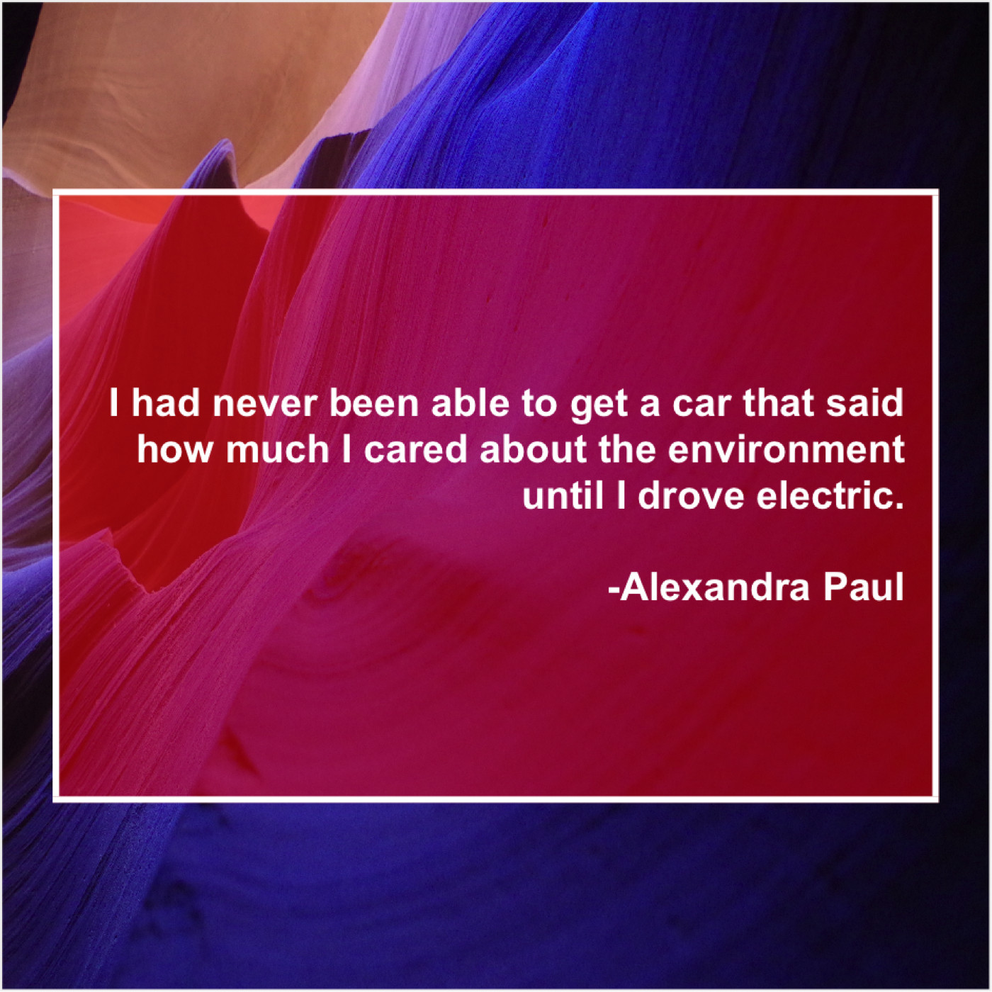 Alexandra Paul Alexandra Paul – I had never been able… September 27, 2019 admin “I had never been able to get a car that said how much I cared about the environment until I drove electric.”-Alexandra Paul