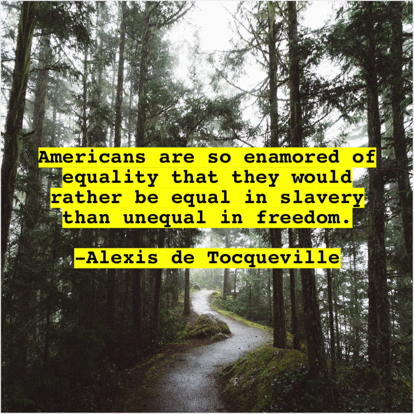 “Americans are so enamored of equality that they would rather be equal in slavery than unequal in freedom.”