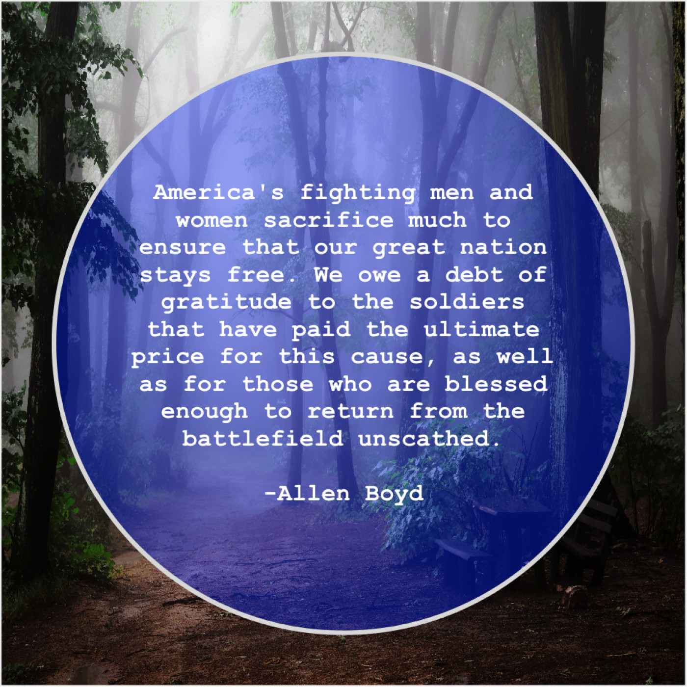 “America’s fighting men and women sacrifice much to ensure that our great nation stays free. We owe a debt of gratitude to the soldiers that have paid the ultimate price for this cause, as well as for those who are blessed enough to return from the battlefield unscathed.”