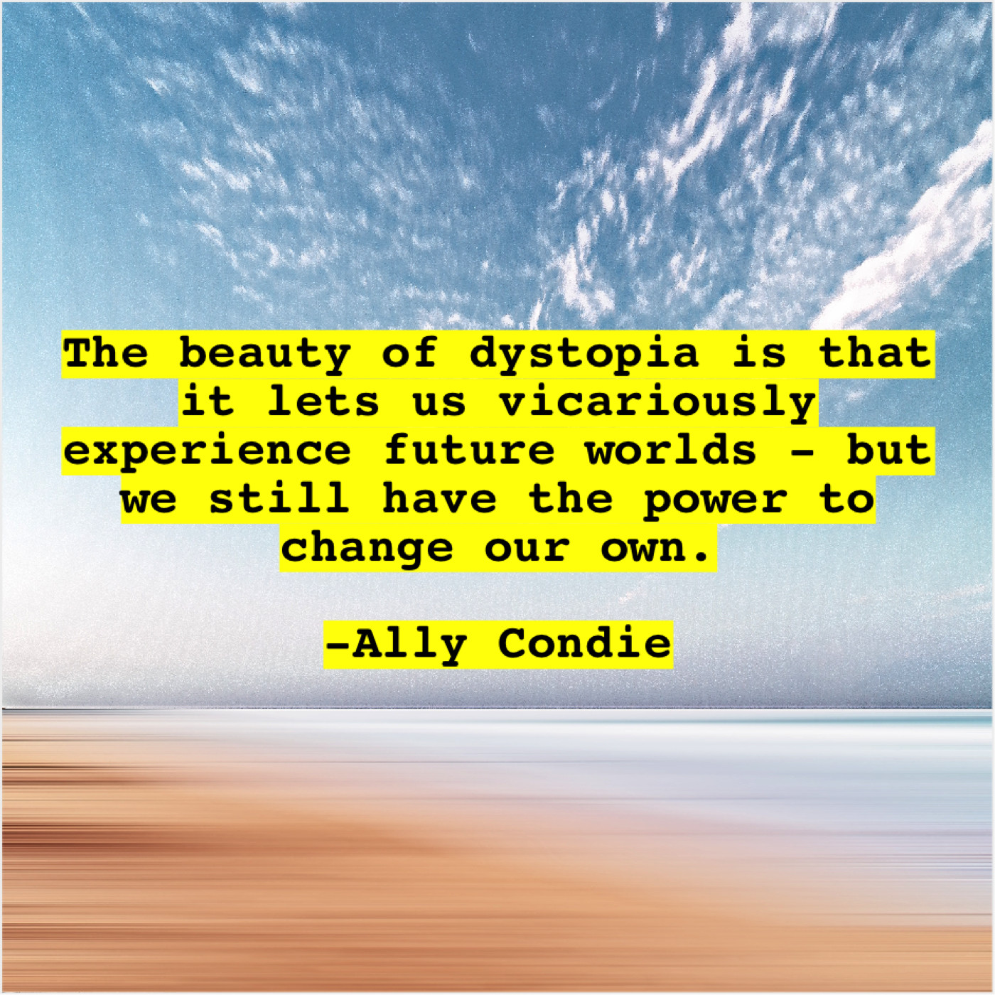 Ally Condie Ally Condie – The beauty of dystopia is… September 11, 2019 admin “The beauty of dystopia is that it lets us vicariously experience future worlds – but we still have the power to change our own.”-Ally Condie