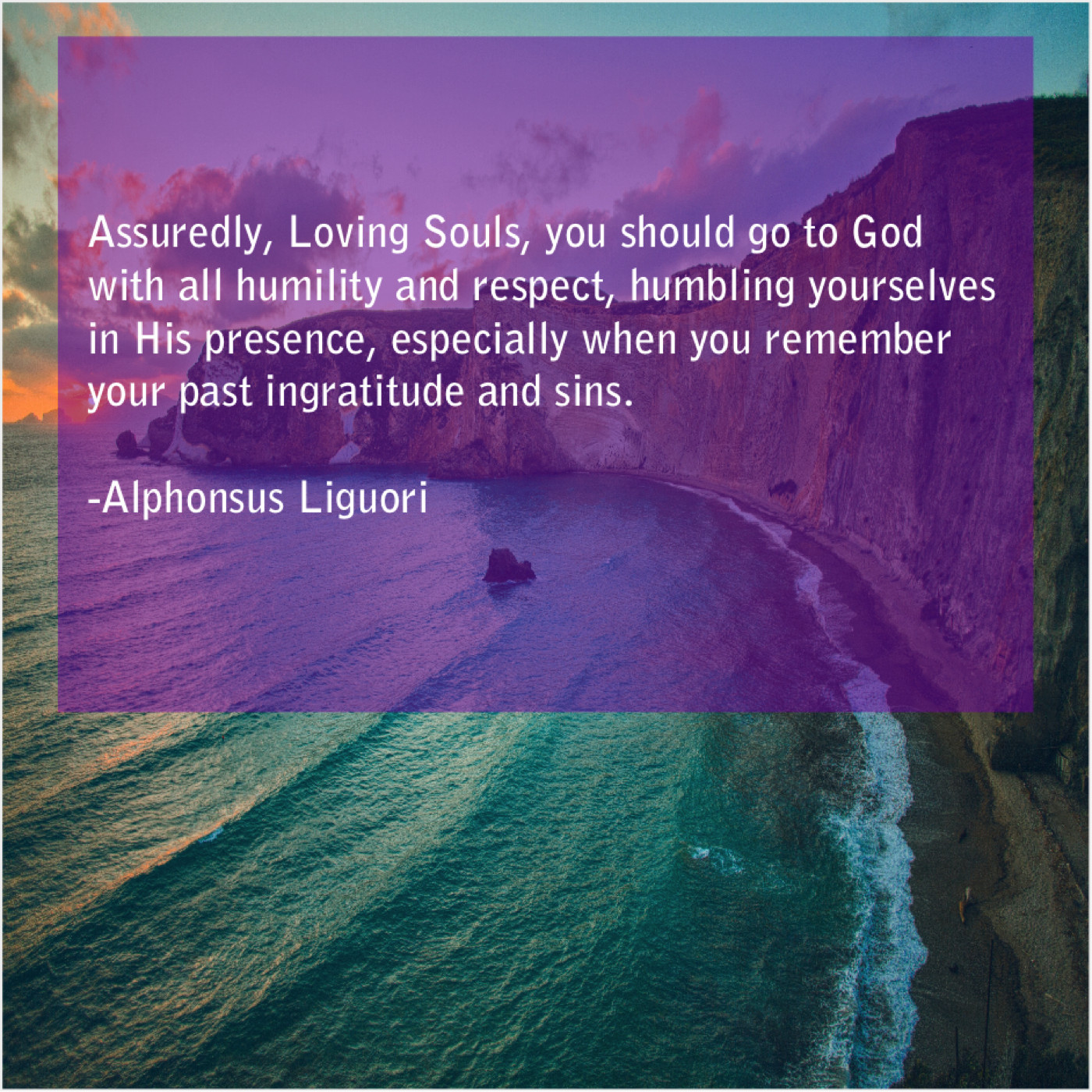 Alphonsus Liguori Alphonsus Liguori – Assuredly, Loving Souls, you should… December 21, 2018 admin “Assuredly, Loving Souls, you should go to God with all humility and respect, humbling yourselves in His presence, especially when you remember your past ingratitude and sins.”-Alphonsus Liguori