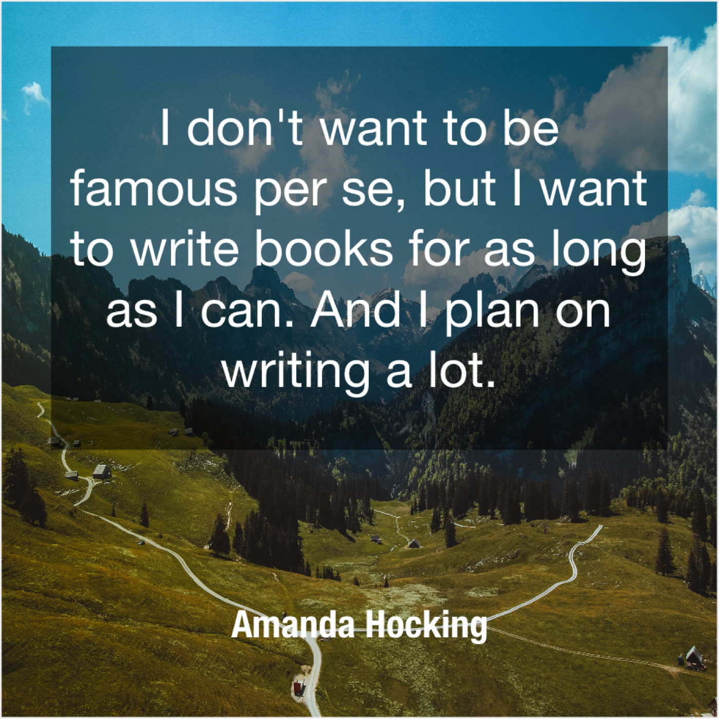 Amanda Hocking Amanda Hocking – I don’t want to be… October 1, 2019 admin “I don’t want to be famous per se, but I want to write books for as long as I can. And I plan on writing a lot.”-Amanda Hocking