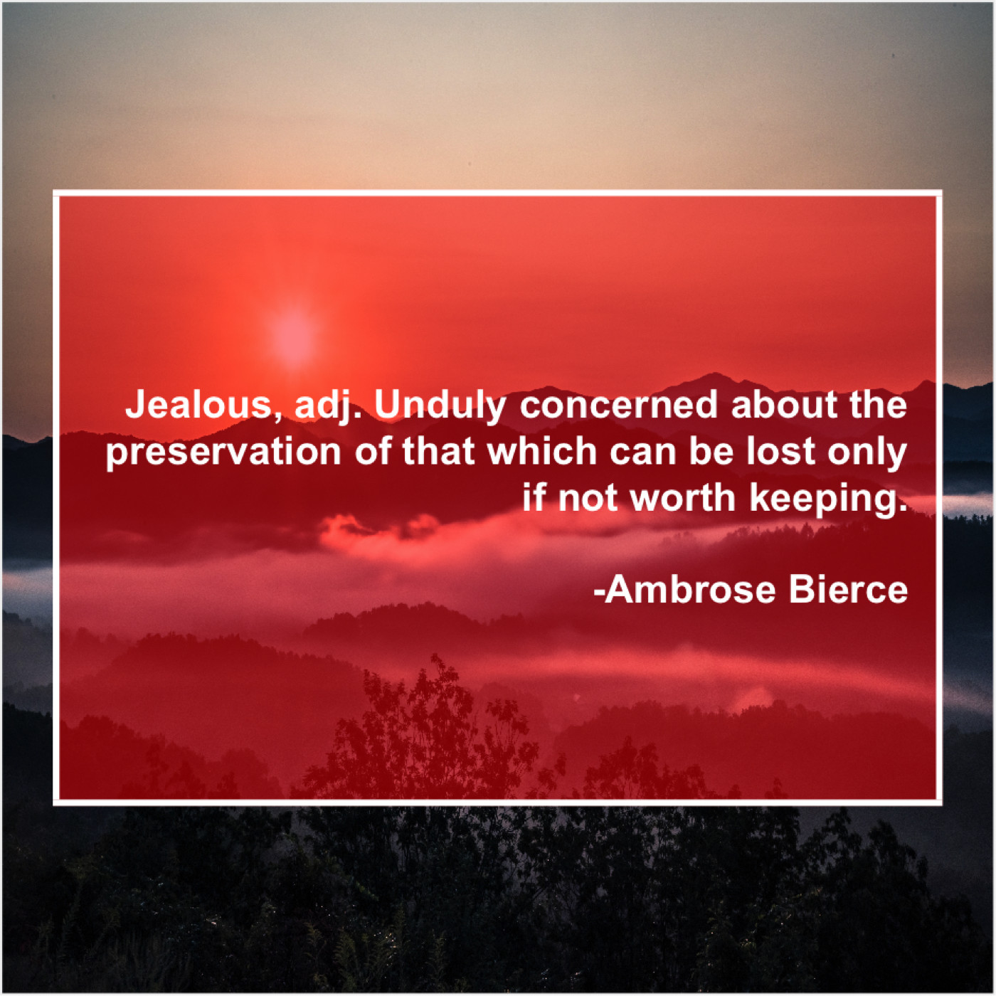 Ambrose Bierce Ambrose Bierce – Jealous, adj. Unduly concerned about… August 16, 2019 admin “Jealous, adj. Unduly concerned about the preservation of that which can be lost only if not worth keeping.”-Ambrose Bierce
