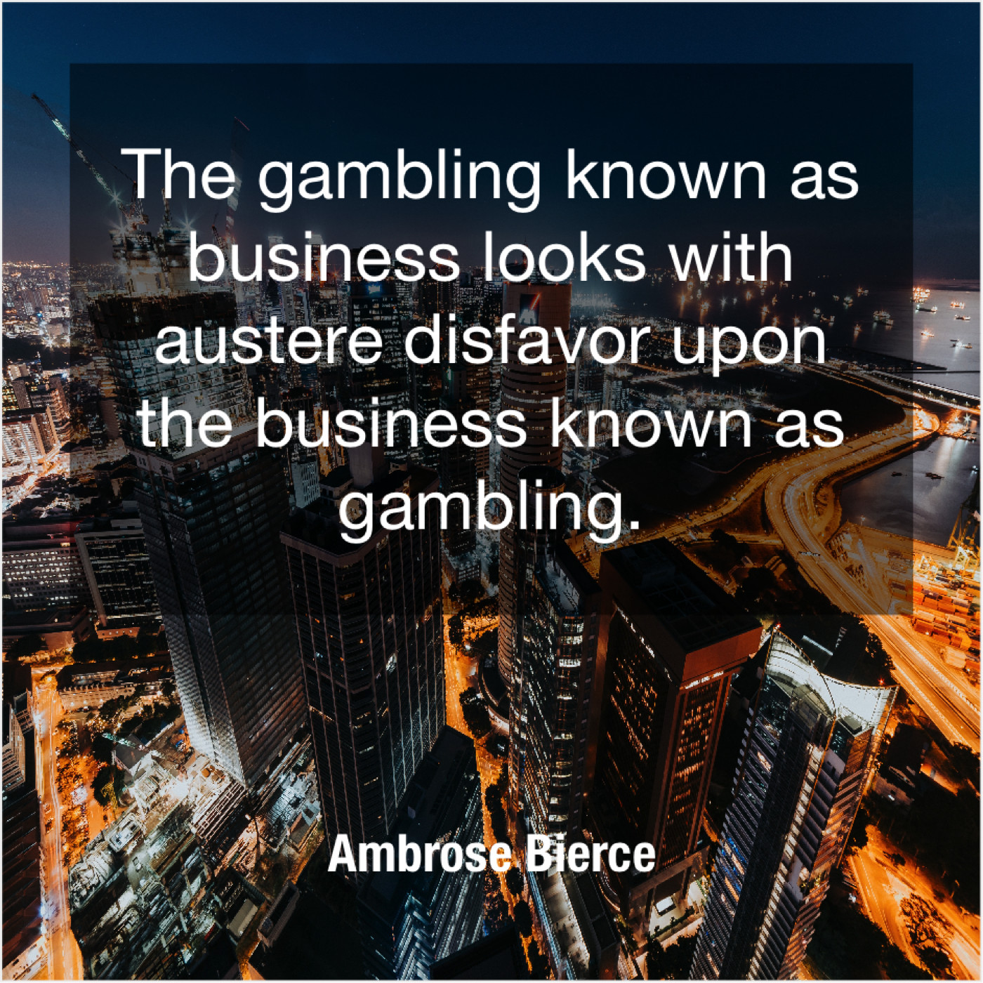 Ambrose Bierce Ambrose Bierce – The gambling known as business… December 19, 2018 admin “The gambling known as business looks with austere disfavor upon the business known as gambling.”-Ambrose Bierce