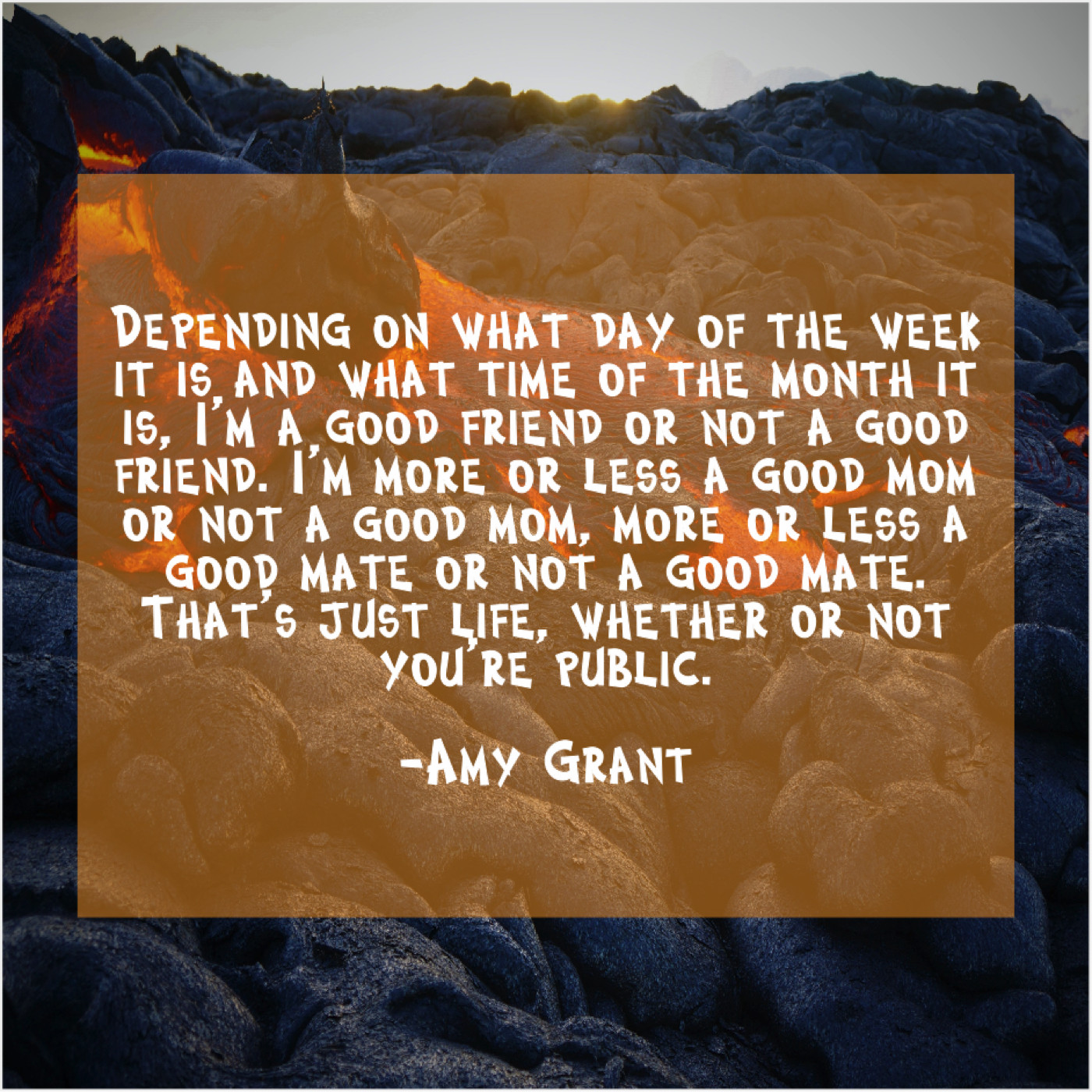 “Depending on what day of the week it is and what time of the month it is, I’m a good friend or not a good friend. I’m more or less a good mom or not a good mom, more or less a good mate or not a good mate. That’s just life, whether or not you’re public.”
