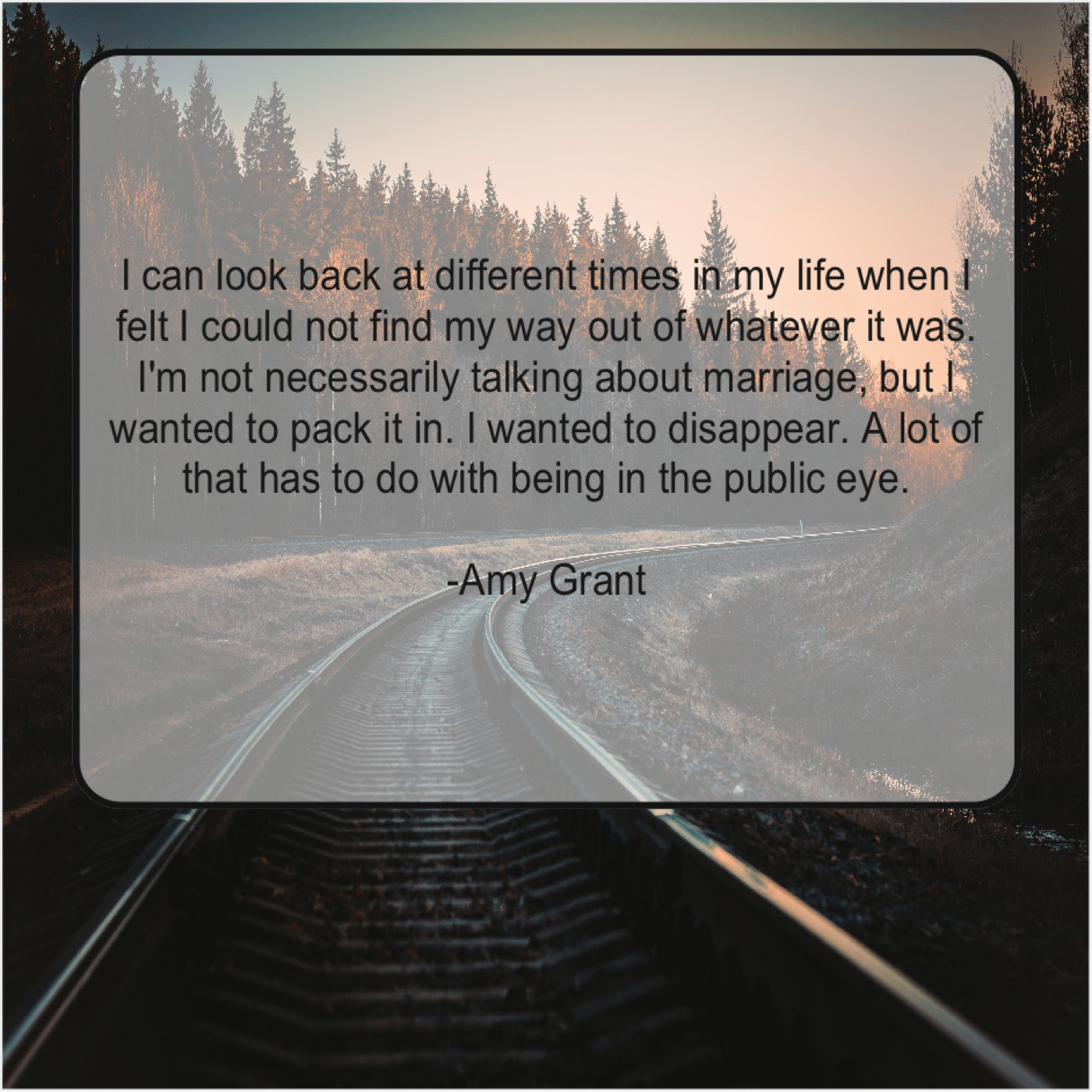 “I can look back at different times in my life when I felt I could not find my way out of whatever it was. I’m not necessarily talking about marriage, but I wanted to pack it in. I wanted to disappear. A lot of that has to do with being in the public eye.”