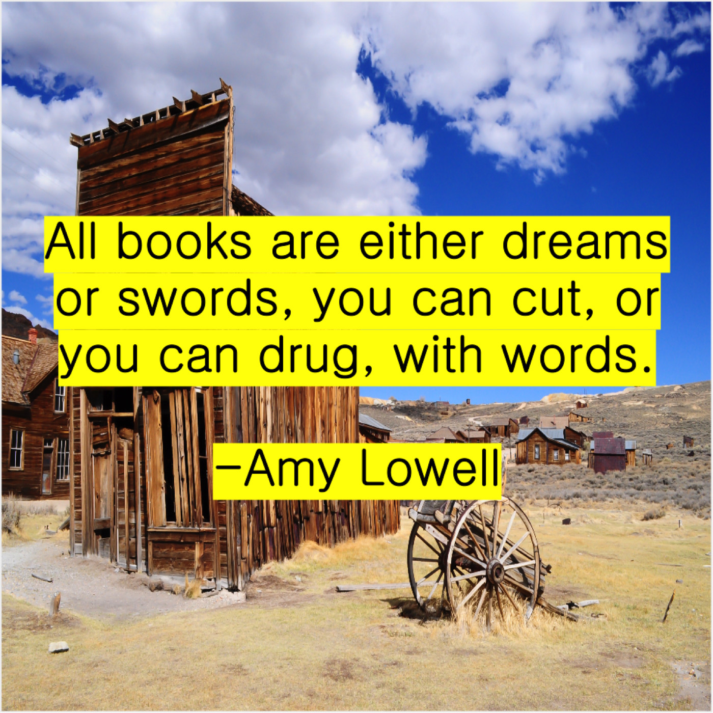 Amy Lowell Amy Lowell – All books are either dreams… April 4, 2019 admin “All books are either dreams or swords, you can cut, or you can drug, with words.”-Amy Lowell