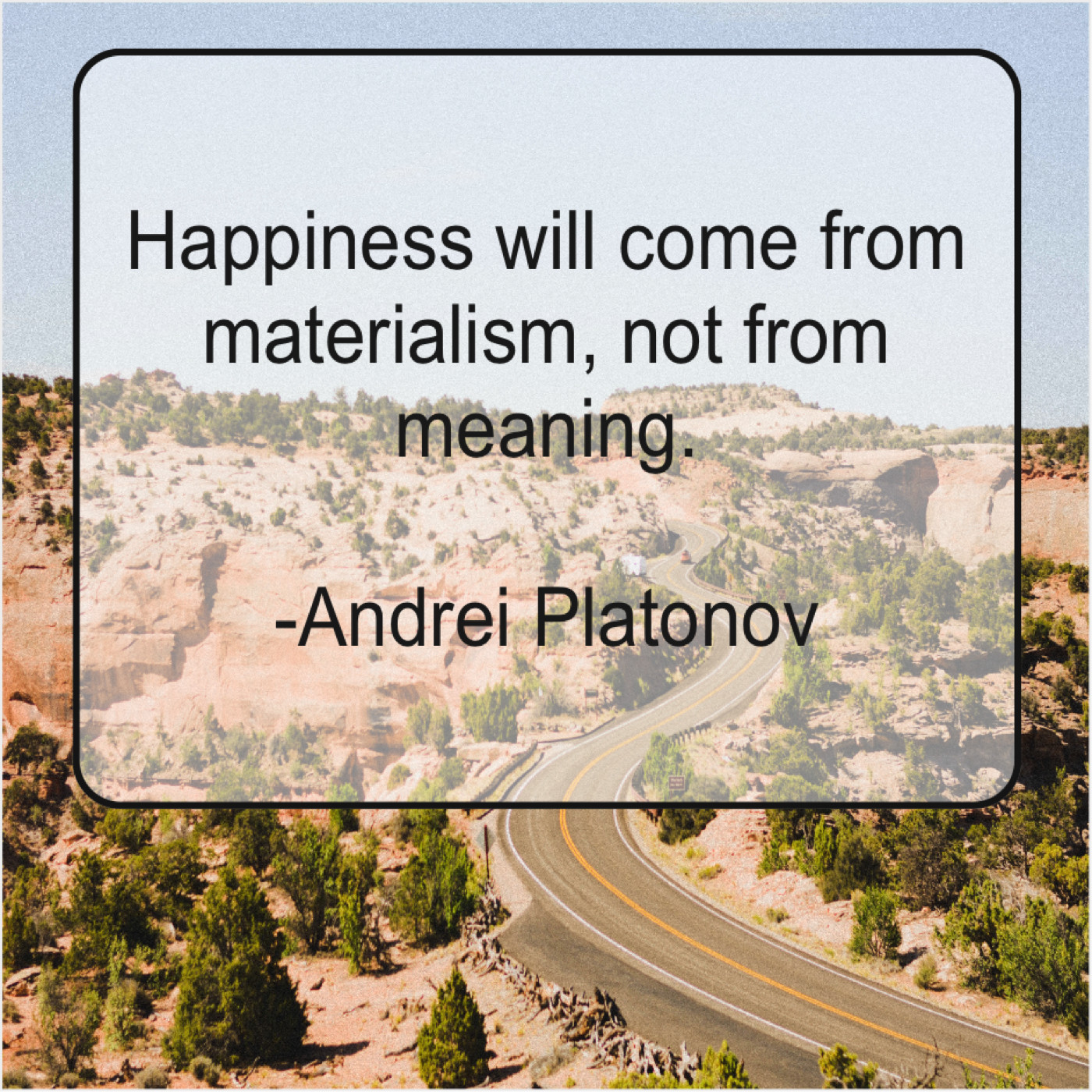 Andrei Platonov Andrei Platonov – Happiness will come from materialism… May 27, 2019 admin “Happiness will come from materialism, not from meaning.”-Andrei Platonov