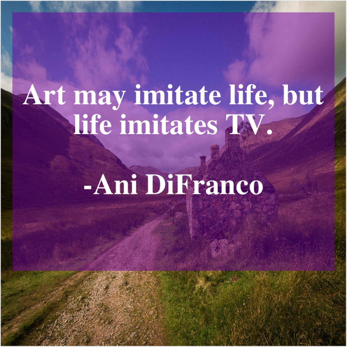 Ani DiFranco Ani DiFranco – Art may imitate life, but… August 2, 2019 admin “Art may imitate life, but life imitates TV.”-Ani DiFranco