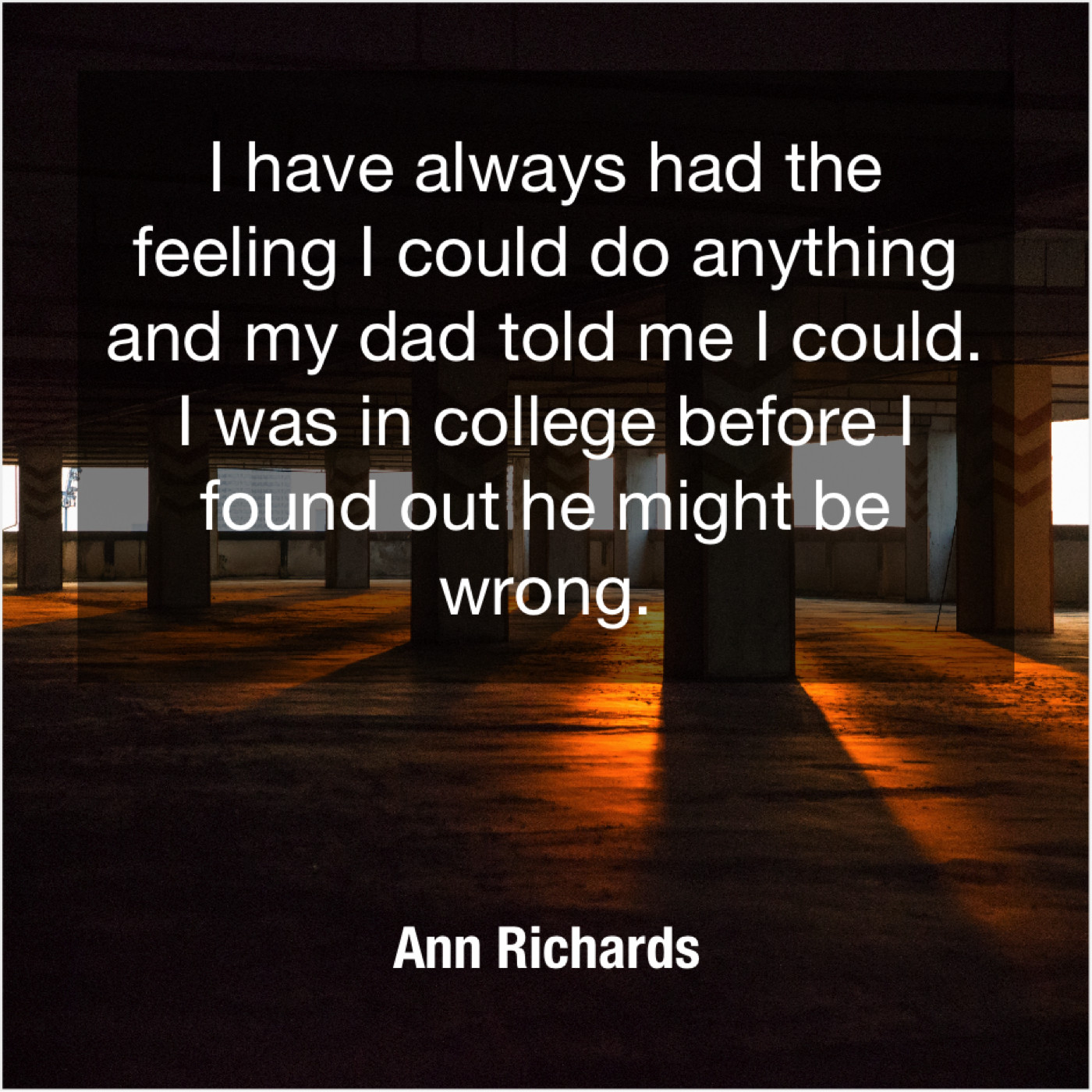 Ann Richards Ann Richards – I have always had the… June 7, 2019 admin “I have always had the feeling I could do anything and my dad told me I could. I was in college before I found out he might be wrong.”-Ann Richards