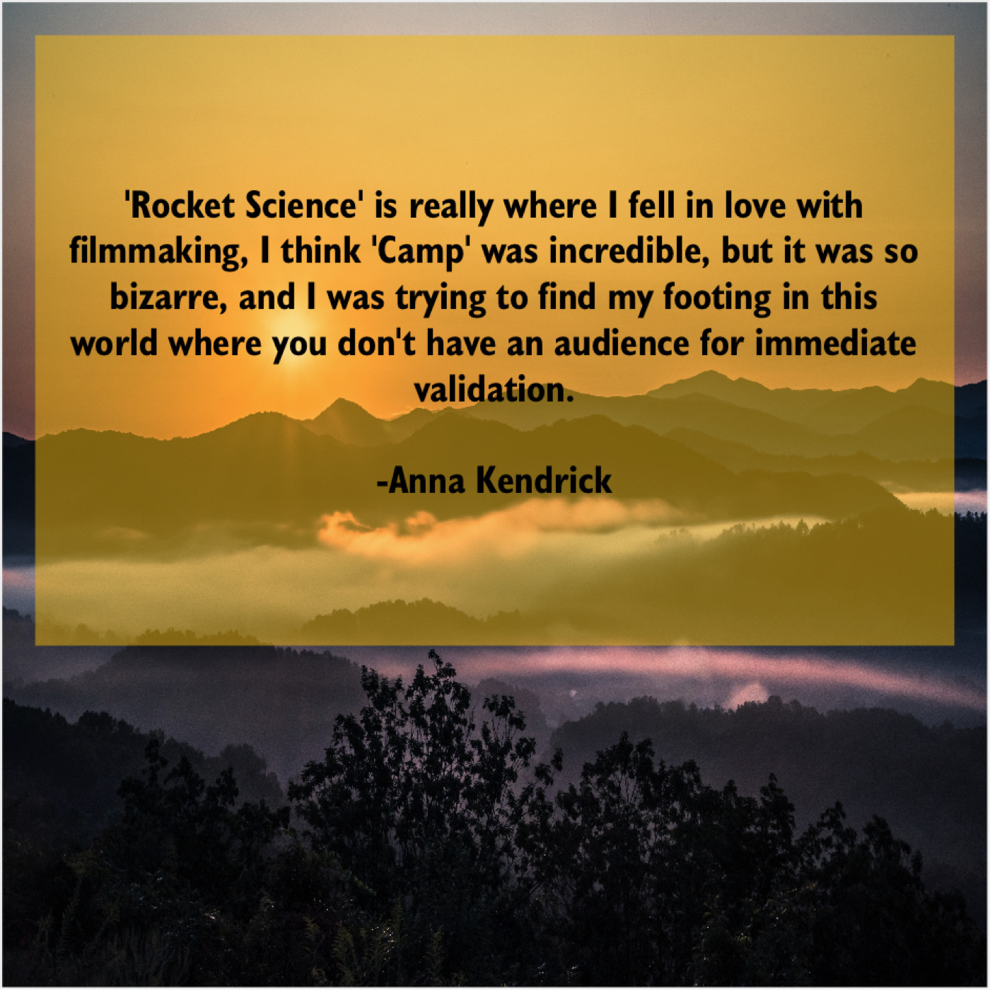 Anna Kendrick Anna Kendrick – Rocket Science’ is really where… February 7, 2019 admin “‘Rocket Science’ is really where I fell in love with filmmaking, I think ‘Camp’ was incredible, but it was so bizarre, and I was trying to find my footing in this world where you don’t have an audience for immediate validation.”-Anna Kendrick