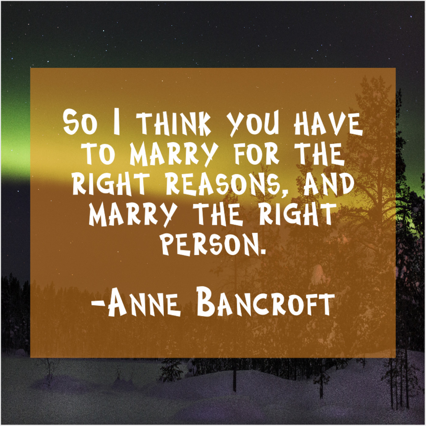 “So I think you have to marry for the right reasons, and marry the right person.”