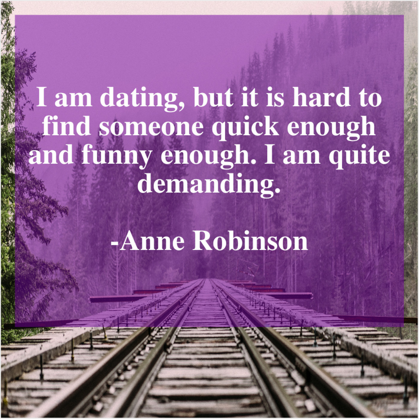 Anne Robinson Anne Robinson – I am dating, but it… June 12, 2019 admin “I am dating, but it is hard to find someone quick enough and funny enough. I am quite demanding.”-Anne Robinson